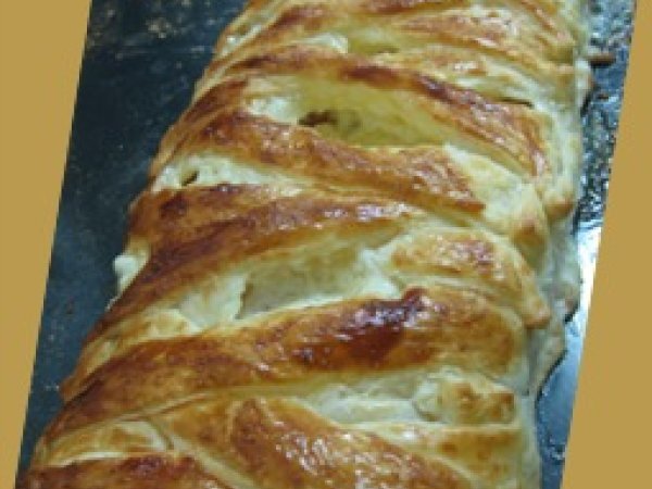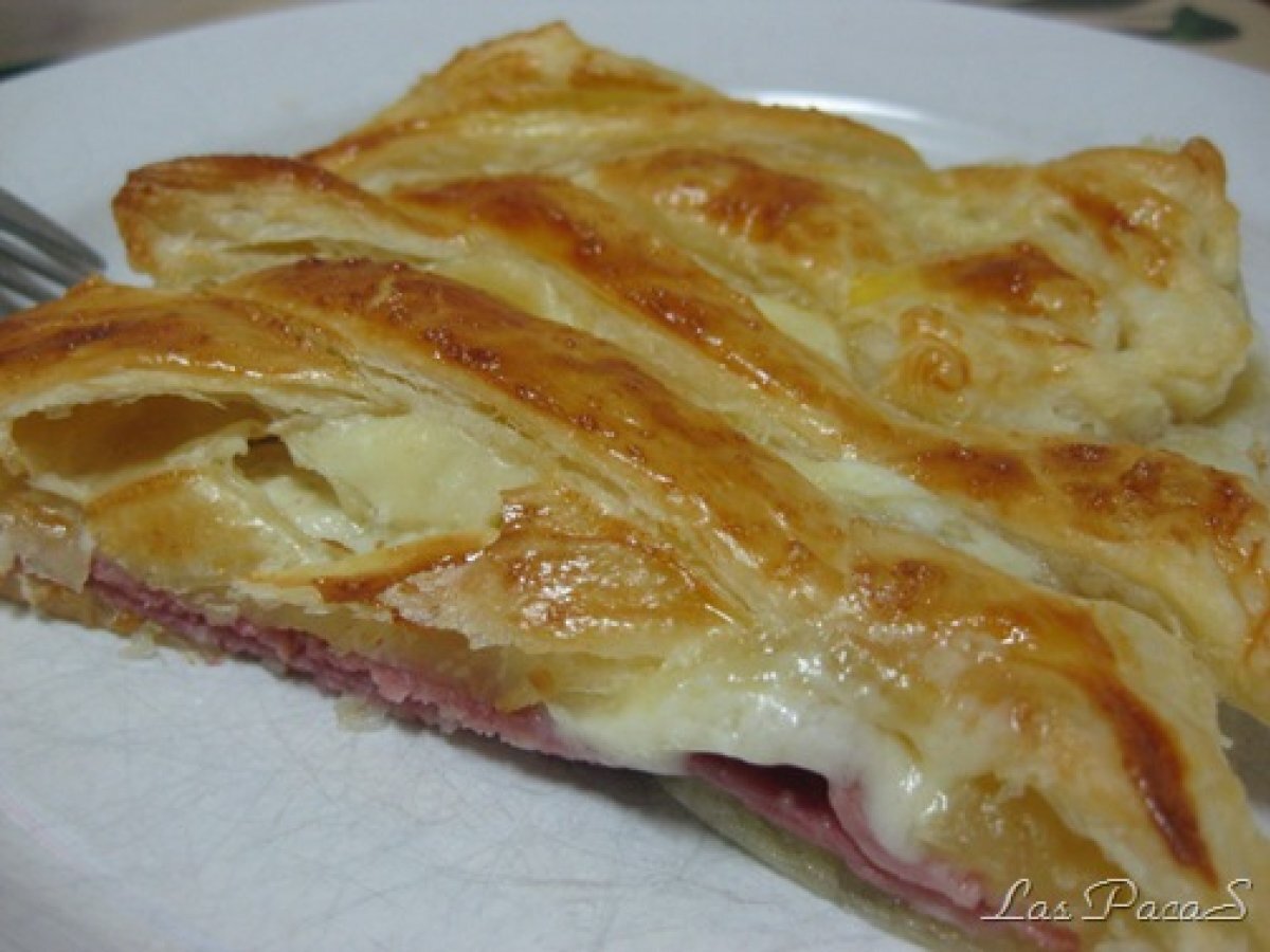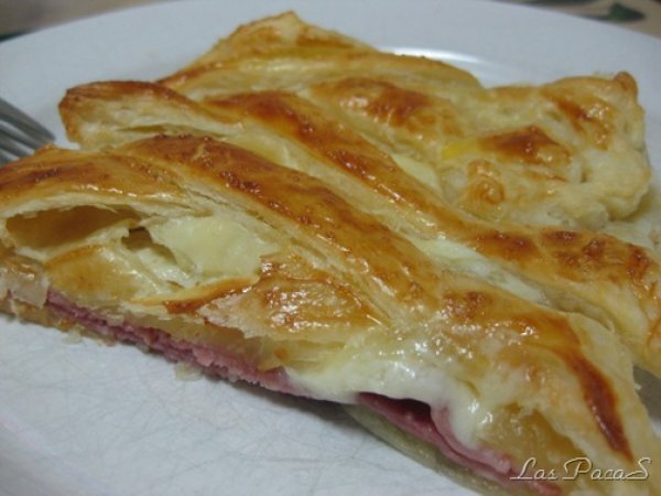 Trenza de lacón braseado y queso AnteriorSiguiente PlatoFácil35 min Enviar esta receta a un amigo Imprimir esta página Preguntar al autor Publicar la foto de esta receta Un ingreso original, muy bueno aspecto y muy sabroso Ingredientes 4 1 lámina de hojaldre fresca Lonchas de queso para fundir 1 paquete de Lonchas de Lacón Braseado 1 huevo para pintar Bechamel (hecha en Thermomix): 400 ml. de leche 40 gr. de harina sal pimienta nuez moscada 40 gr. de aceite de oliva