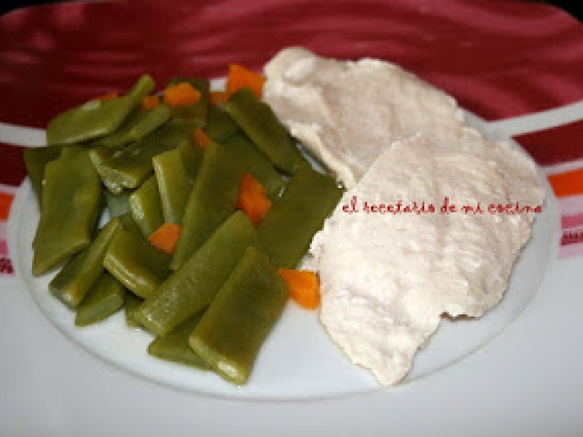 Vainas con patatas y pechuga de pollo tm31 AnteriorSiguiente PlatoFácil20 min1127 Kcal Enviar esta receta a un amigo Imprimir esta página Preguntar al autor Publicar la foto de esta receta Ingredientes 2 450 g de vainas 60 g de zanahorias 250 g de patatas 800 g de agua 10 g de aceite de oliva virgen extra Sal Pechugas de pollo (opcional) Costo estimado: 15.32Euros€ (7.66€/porción)