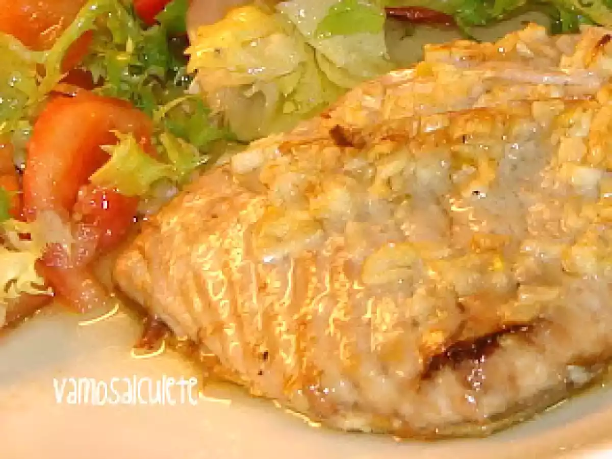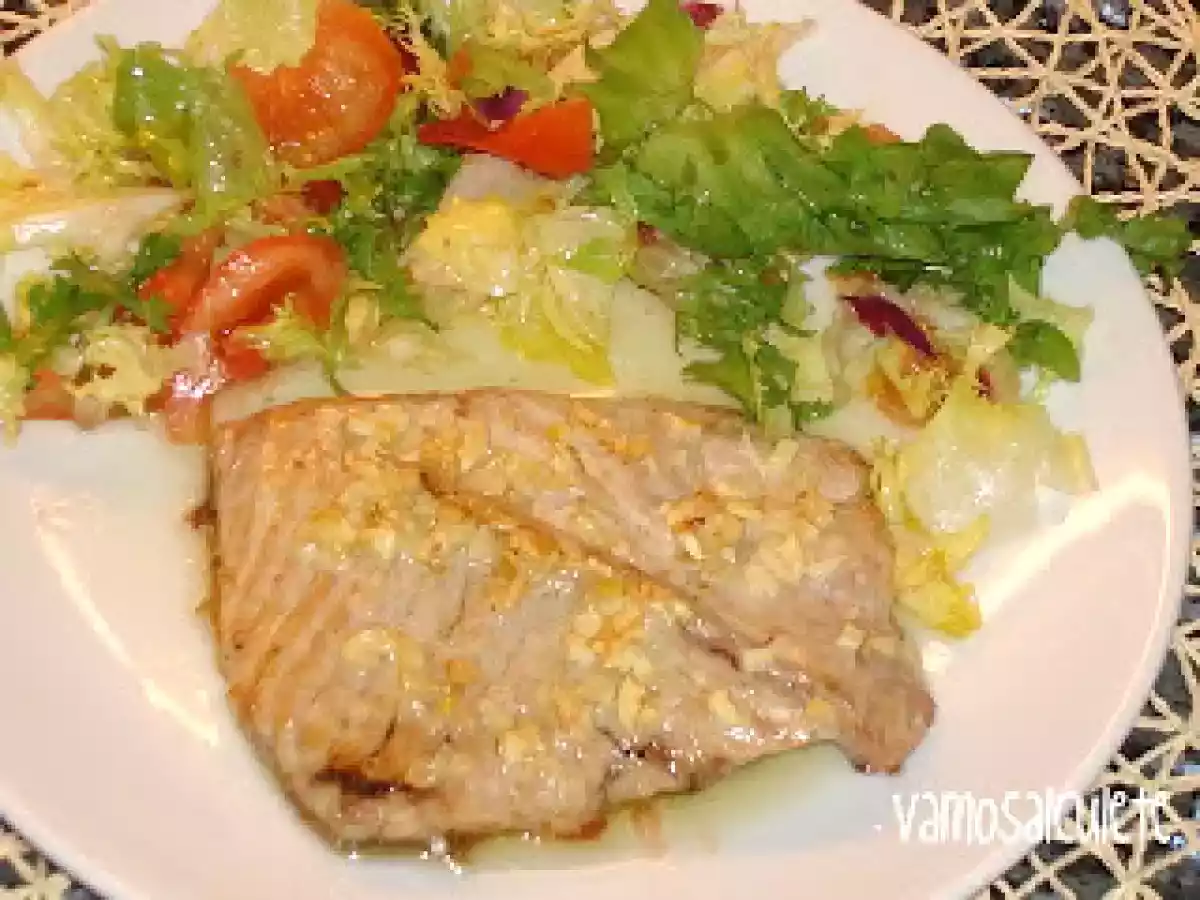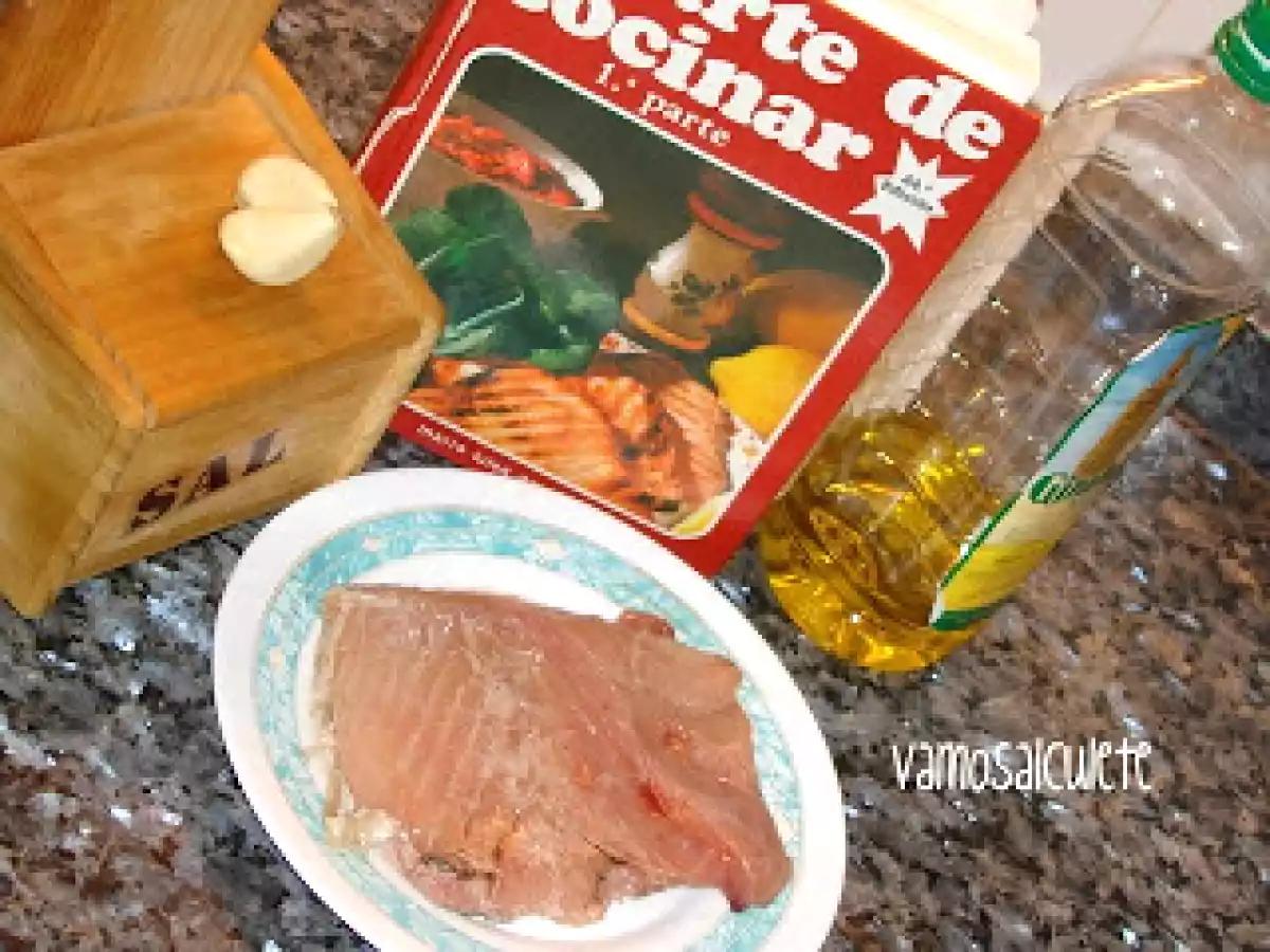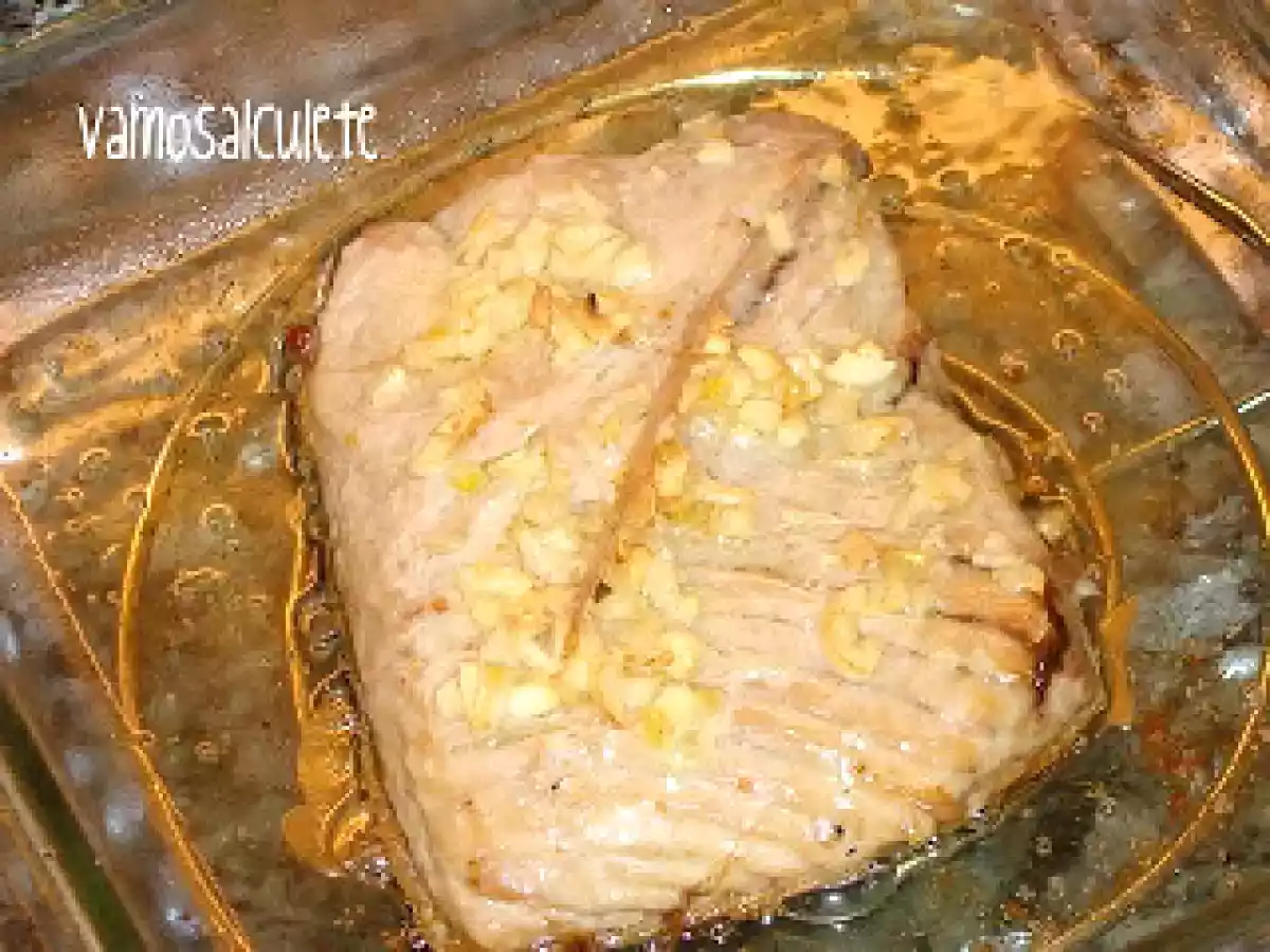 Ventresca de bonito al horno AnteriorSiguiente PlatoFácil35 min239 Kcal Enviar esta receta a un amigo Imprimir esta página Preguntar al autor Publicar la foto de esta receta Ingredientes 1 Ventresca de bonito (en esta ocasión unos 240 g) Ajo. Aceite. Sal. Costo estimado: 1.42Euros€ (1.42€/porción)