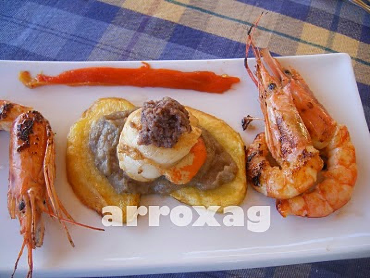 Vieira en lecho de patata con sabor cantábrico vota ahora AnteriorSiguiente PlatoFácil15 min Enviar esta receta a un amigo Imprimir esta página Preguntar al autor Publicar la foto de esta receta Ingredientes 2 Para cada tapa 1 vieira 2 rodajas de patatas 2 o 3 gambas paté de percebe