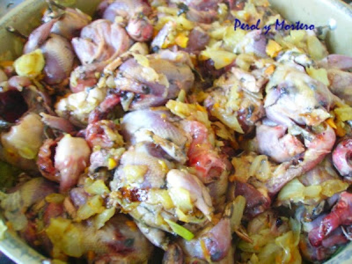 Zorzales en salsa PlatoMedio1 h 15 m Enviar esta receta a un amigo Imprimir esta página Preguntar al autor Publicar la foto de esta receta Ingredientes 12 12 Zorzales 2 Cebollas 4 Zanahorias 1 Cabeza de ajos 1 Vaso de Vino de Jerez ½ Litro de Caldo de Ave Aceite de Oliva Virgen Extra Pimienta Negra Molida Romero (si es fresco mejor) Tomillo (si es fresco mejor) 1 Hoja de Laurel Sal