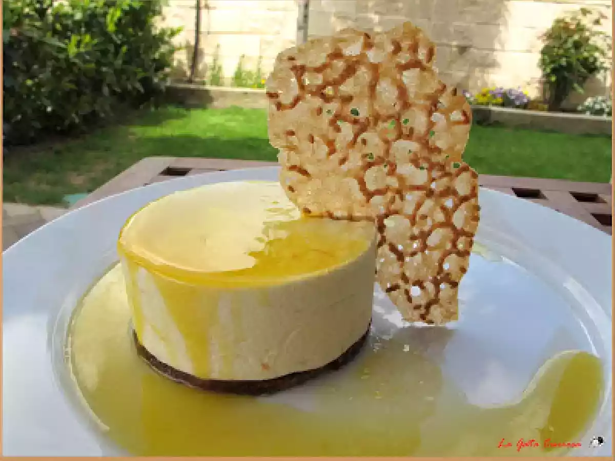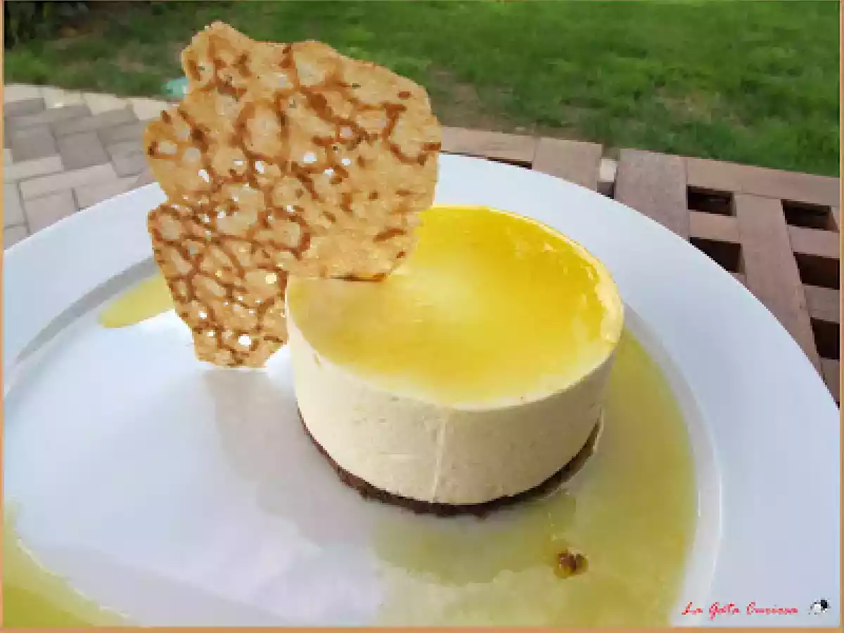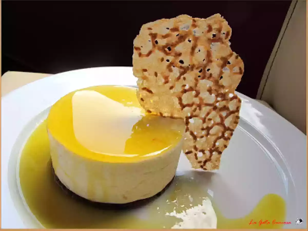 Bavarois de naranja con crujiente de sesamo y salsa de naranja