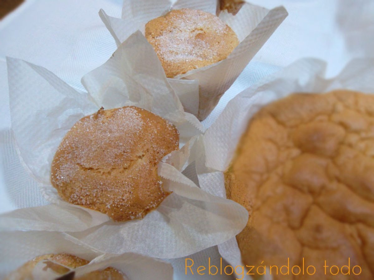 - Esta vez también he hecho Magdalenas de Bescuit, aprovechando un poco de masa. Lo único que les he puesto es un poco de azúcar por encima antes de meterlas en el horno.