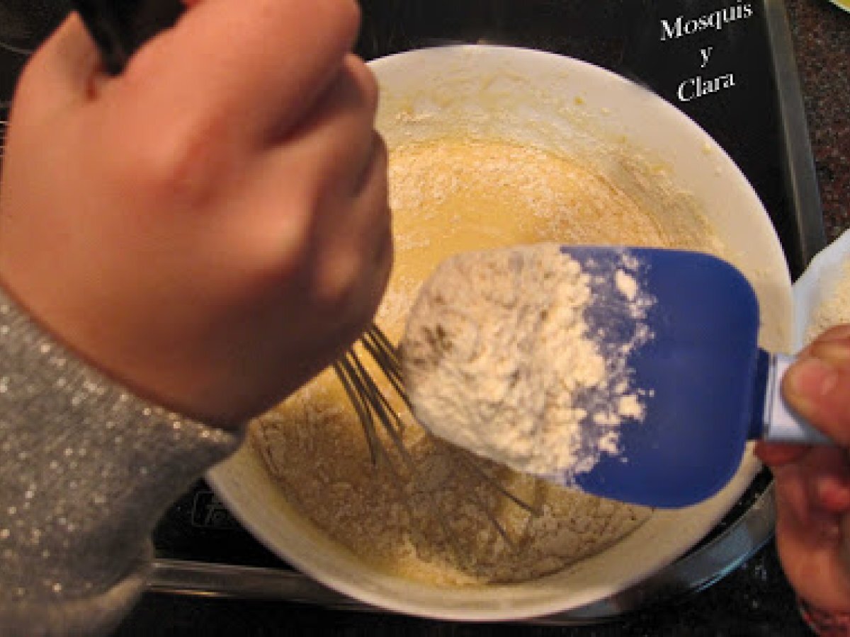 Bizcocho de nata y chocolate blanco AnteriorSiguiente PostreFácil50 min Enviar esta receta a un amigo Imprimir esta página Preguntar al autor Publicar la foto de esta receta Quedó muy bonito, y muy rico. Ingredientes 2 1 brick de nata pequeño, que es más o menos una taza. l medida de la taza de aceite de girasol 2 medidas de la taza de azúcar 3 medidas de harina 1 sobre de levadura 3 huevos Ralladura de un limón 2 tabletas de chocolate blanco 3 cucharadas de leche