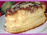Bizcocho de natillas de chocolate sobre sopa de natillas