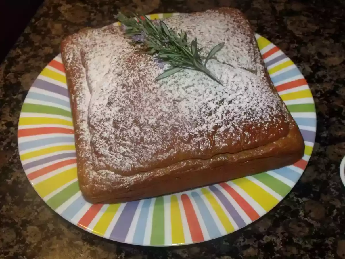 Bizcocho de romero y aceite de oliva AnteriorSiguiente PostreFácil1 h 5 m467 Kcal Enviar esta receta a un amigo Imprimir esta página Preguntar al autor Publicar la foto de esta receta Ingredientes 6 4 huevos 150 gr de azucar 160 ml de aceite de oliva 2 cuharaditas de romero fresco picado 150 gr de harina para repostería 10 gr levadura royal 1 cucharadita de sal azucar glacé para decorar Costo estimado: 2.94Euros€ (0.49€/porción)