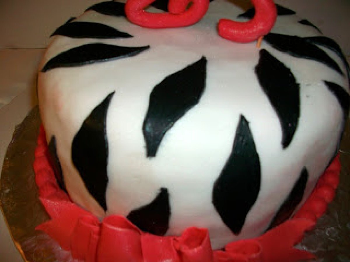 Bizcocho zebra en pasta laminada de gelatina y decoraciones en pasta de goma. AnteriorSiguiente PostreFácil40 min Enviar esta receta a un amigo Imprimir esta página Preguntar al autor Publicar la foto de esta receta Ingredientes 2 9 g de gelatina sin sabor 2 onza fl de agua fría 1 cucharada de extracto de almendra, naranja ó limón 4 onza de glucosa 1 cucharada de glycerina 2 libras de azúcar de pastelería, impalpable, ó10x 2 cucharadas de vegetalina o manteca vegetal hidrogenada.