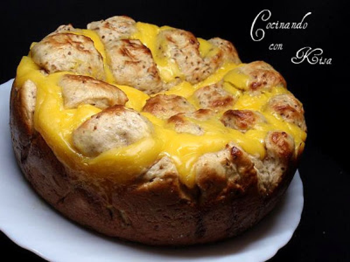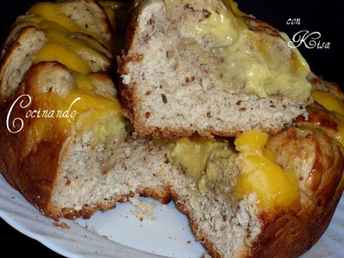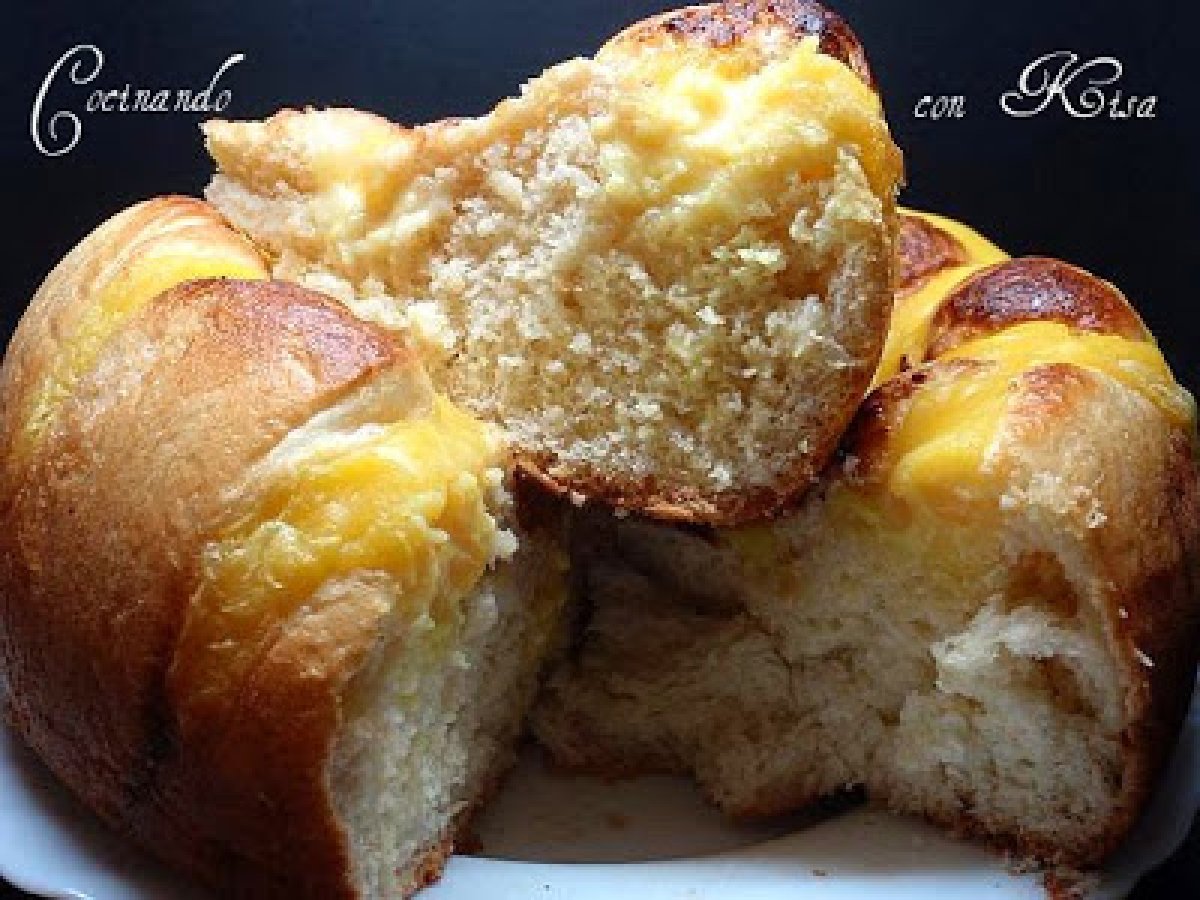 Bolla larpeira gallega (fussioncook+thermomix+chef of matic) AnteriorSiguiente PostreFácil1 h 50 m852 Kcal Enviar esta receta a un amigo Imprimir esta página Preguntar al autor Publicar la foto de esta receta Ingredientes 4 25 g de anís (o 15 g de anís en grano para la segunda opción como las fotos de abajo) 100 g de leche tibia 50 g de mantequilla 50 g de azúcar 1 huevo batido 1 pizca de sal 20 g de levadura prensada fresca 325 g de harina de fuerza para la crema pastelera en thermomix: 500 ml de leche 125 g de azúcar 10 g de mantequilla 45 g de de maicena 3 yemas de huevo La piel de un limón ½ vaina de vainilla Colorante una pizca Ingredientes del calado en thermomix: 40 g de agua 40 g de azúcar 40 g de anís Costo estimado: 5.11Euros€ (1.28€/porción)