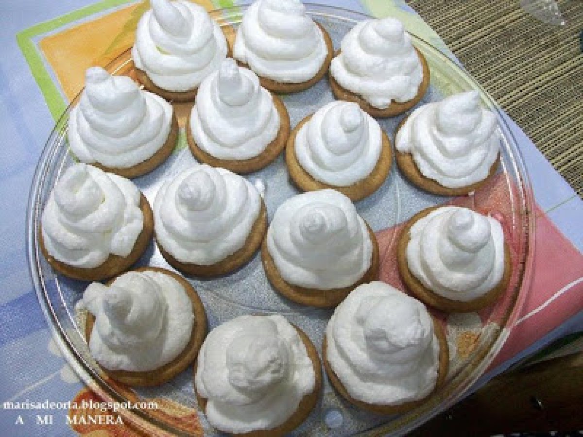 Bombones de merengue francés AnteriorSiguiente PostreFácil40 min5700 Kcal Enviar esta receta a un amigo Imprimir esta página Preguntar al autor Publicar la foto de esta receta De postre delicioso para toda la familia. Ingredientes 4 4 claras de huevo 150 g de azúcar Galletas maría ó bases de bizcocho 200 g de chocolate postres nestlé 200 c.c. de nata 75 g de mantequilla Costo estimado: 203.15Euros€ (50.79€/porción)