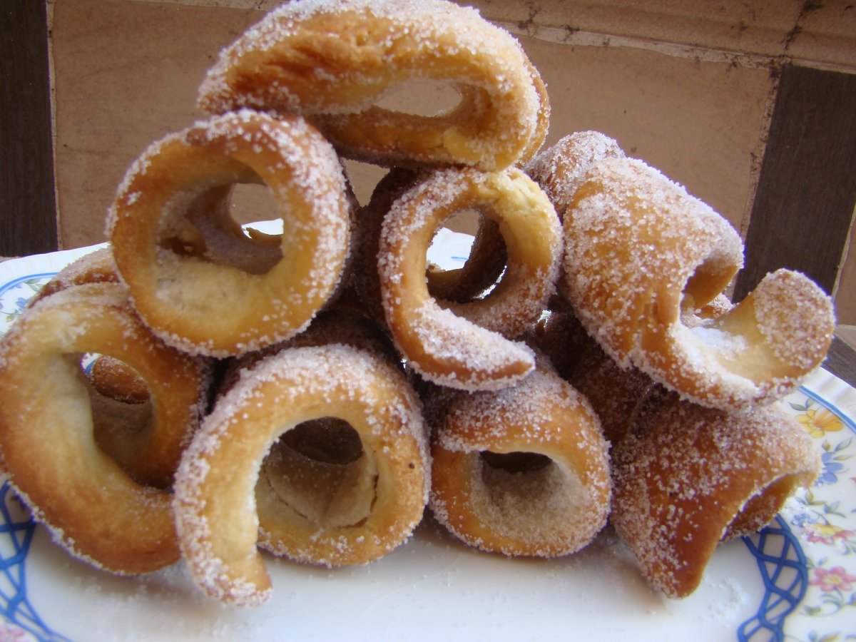 Buñuelos de caña AnteriorSiguiente PostreMedio1 h 15 m Enviar esta receta a un amigo Imprimir esta página Preguntar al autor Publicar la foto de esta receta Dulce tipico extremeño, parecido a los roscos fritos. Muy ricos. Ingredientes 2 200 gr de aceite 50 gr de vino blanco 50 gr de aguardiente 80 gr de agua 1 palito de canela Anís en grano un poco 30 gr de azúcar Una pizca de sal 600 gr de harina Aceite de oliva virgen para freír Azúcar para envolver a los buñuelos una vez fritos