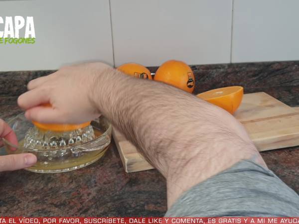 Aquí tengo unas naranjas que vamos a exprimir para sacarles el zumo, vamos añadiendo el zumo a un vaso medidor. Con medio litro de zumo será suficiente.
