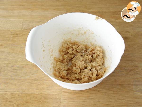 Mezclar la mantequilla a temperatura ambiente + azúcar moreno.