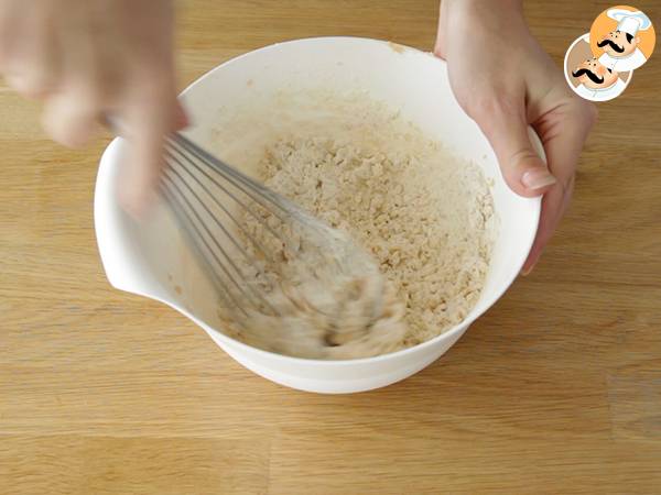 Incorporar la harina + levadura + azúcar vainillado y mezclar.