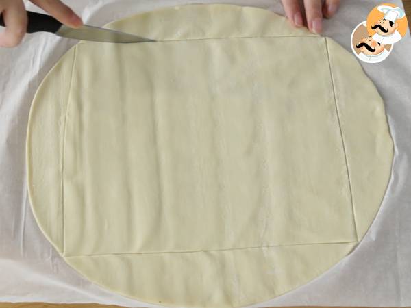 Cortamos el rulo de hojaldre en forma de cuadrado (en el caso de que tu hojaldre sea redondo)