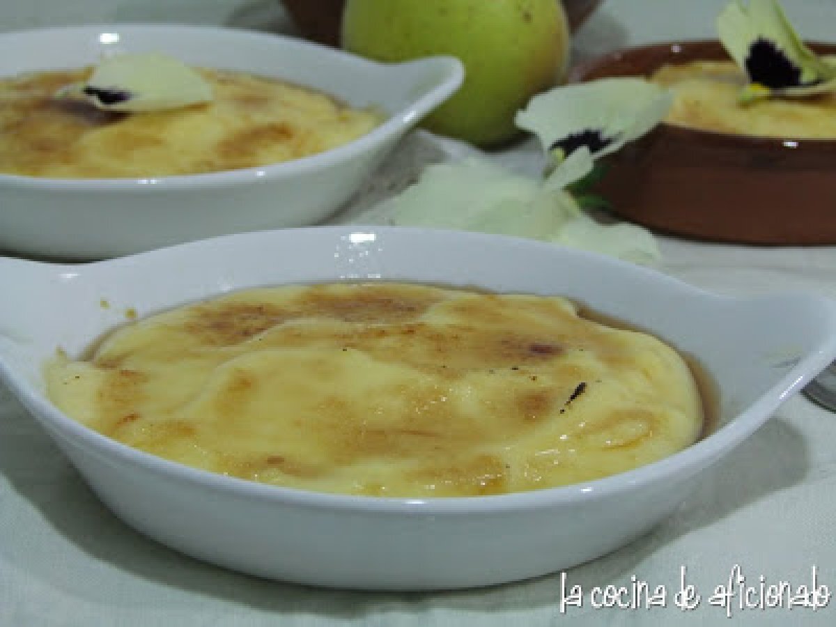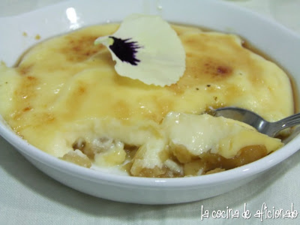 Crema catalana con manzana asada AnteriorSiguiente PostreFácil50 min720 Kcal Enviar esta receta a un amigo Imprimir esta página Preguntar al autor Publicar la foto de esta receta Ingredientes 2 1/2 l de leche 4 yemas de huevo 100 g de azúcar blanca 4 cucharadas de azúcar moreno para quemar 25 g de maicena 1 palo de canela 1 trozo de piel de limón 2 manzanas Costo estimado: 2.37Euros€ (1.18€/porción)