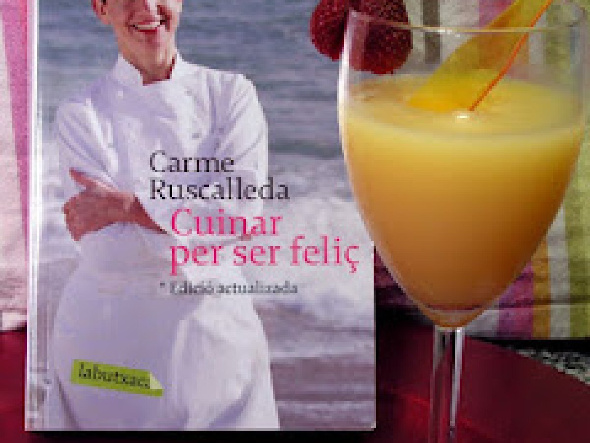 La Carme Ruscalleda és d'aquelles dones que transmeten una energia i un ànim incombustible.M'agrada com sap transmetre la seva passió per la cuina, i com sap explicar les receptes amb una naturalitat i senzillesa que la fan tan especial. Per Sant jordi vaig tenir davant una joia a molt bon preu: "cuinar per ser feliç", així que em vaig "autorregalar" un llibre farcit d'il.lusió. Tinc una colla de receptes marcades però he començat per aquesta crema ja que ara que es deixa sentir la calor ens anirà molt bé!, a més a més, com que darrerament us estic presentant postres fresquetes l'afeigeixo a la "col.lecció!. Fixeu-vos que no porta llet, està feta amb aigua, per això és tant lleugera. Boníiiiisima!