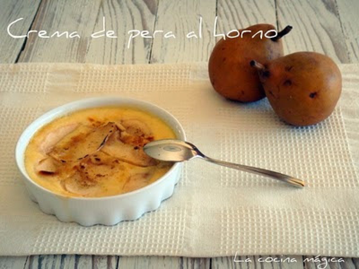 Crema de pera al horno AnteriorSiguiente PostreMedio35 min579 Kcal Enviar esta receta a un amigo Imprimir esta página Preguntar al autor Publicar la foto de esta receta Ingredientes 4 2 yemas de huevo 1 huevo entero 500 ml de nata líquida 100 g de azúcar blanquilla 2 peras cortadas en finas rodajas 1 cucharadita de extracto de vainilla líquida Nuez moscada recién molida para espolvorear Costo estimado: 3.67Euros€ (0.92€/porción)