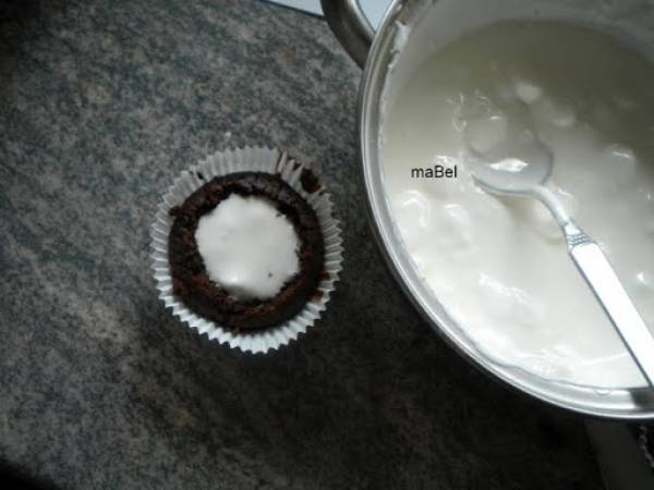 Cupcake de chocolate tipo pingüinos marinela AnteriorSiguiente PostreFácil42 min Enviar esta receta a un amigo Imprimir esta página Preguntar al autor Publicar la foto de esta receta 10 puntos le dió mi hijo, ya no quedó ni una, quieren mas!!! Insaciables. Ingredientes 4 Bizcochito: 1 taza y media de crema de marshmallow (malvavisco, esponjitas, nubes) 1/2 cdita de gelatina sin sabor en polvo 2 cdas de agua 2 cdas de mantequilla blanda 2 barritas de chocolate picado 2 cdas colmadas de cacao amargo en polvo 1/2 cdita de café soluble 1/2 taza de agua hirviendo 3/4 taza de azúcar 1/2 taza de aceite 1 yogur natural ( yo use griego) o 1/2 taza de crema agria 2 huevos grandes esencia de vainilla 1 taza de harina una pizca de sal 1/2 cdita de bicarbonato de sodio Cobertura: 2 barritas de chocolate 1 cda de mantequilla Decoración: glase real