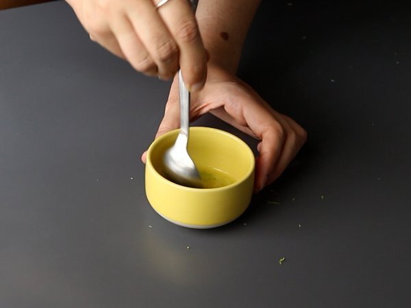 Mezcla el zumo y la ralladura de lima con el sirope de agave.