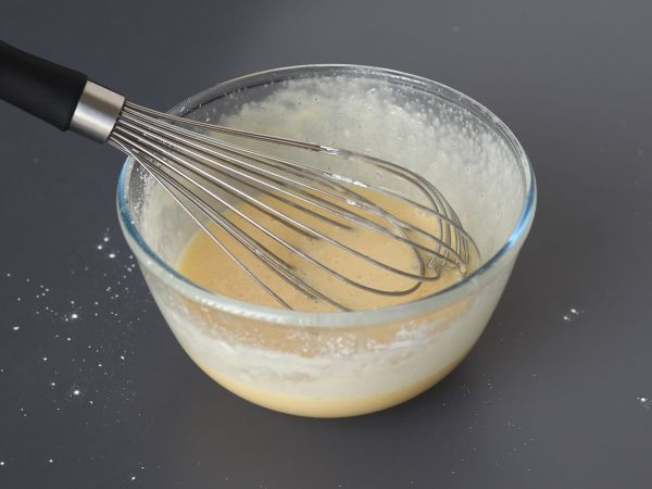 Mientras esperas a que la leche hierva, mezcla, con unas varillas manuales, en un bol grande los huevos, el azúcar y la maicena (puedes añadirla en varias tandas para evitar grumos).