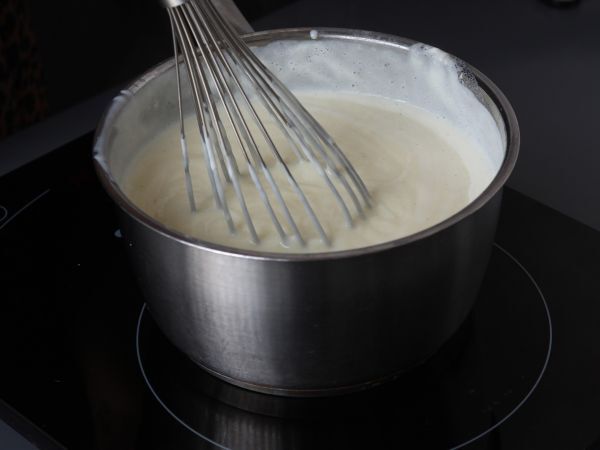 Vuelve a poner el cazo al fuego y remueve constantemente hasta que la mezcla espese.