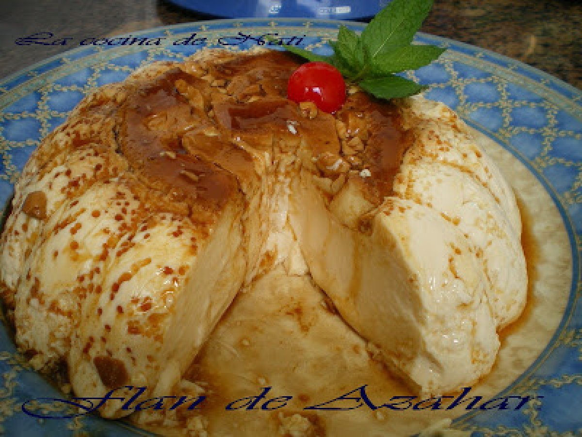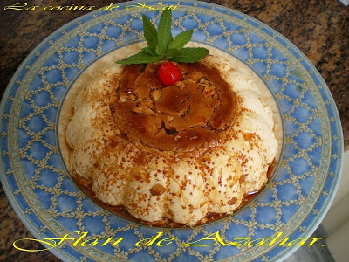 Flan de azahar. AnteriorSiguiente PostreFácil1 h 10 m906 Kcal Enviar esta receta a un amigo Imprimir esta página Preguntar al autor Publicar la foto de esta receta Ingredientes 2 6 yemas de huevo. 1 huevo entero. 1 l de leche. 175 g. de azúcar. 1 cucharadita de esencia de azahar. Caramelo líquido.