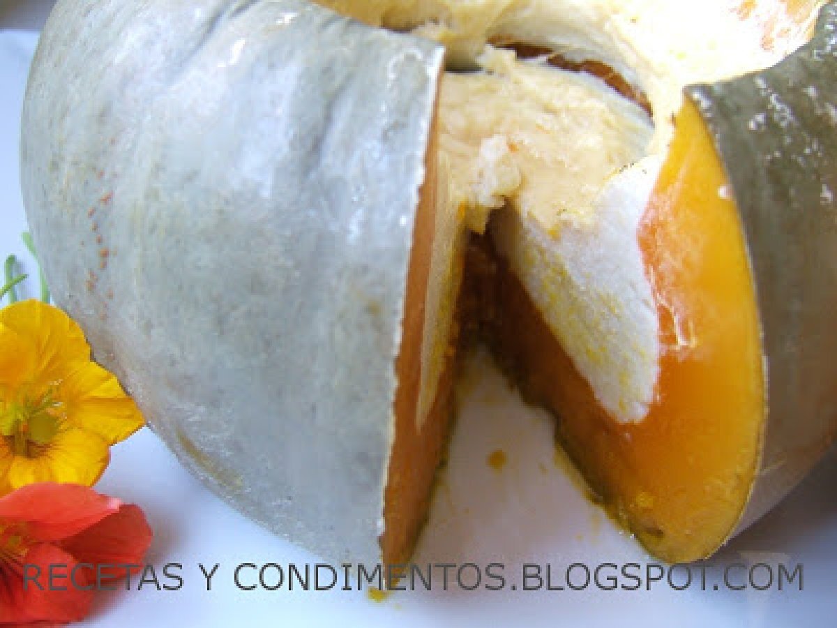 Flan de coco en zapallo - postre tailandes vota ahora AnteriorSiguiente PostreFácil1 h 5 m Enviar esta receta a un amigo Imprimir esta página Preguntar al autor Publicar la foto de esta receta Ingredientes 6 Un zapallo como de 1 1/2 o 2 kg como máximo 1 lata de leche de coco espesa 3/4 taza de azucar de palma o morena 6 huevos grandes 1 pizca de sal