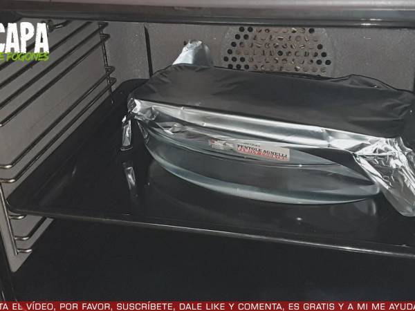 Ahora cubrimos el molde con su tapa correspondiente o con un papel de plata.