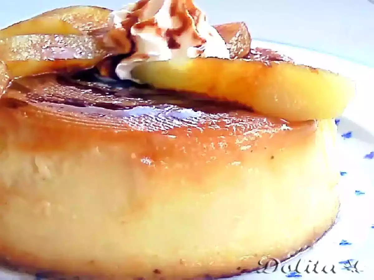 Flan de manzana con caramelo AnteriorSiguiente PostreFácil45 min188 Kcal Enviar esta receta a un amigo Imprimir esta página Preguntar al autor Publicar la foto de esta receta Una deliciosa manera de tomar manzanas Ingredientes 4 2 manzanas 50 gr de azúcar 15 gr de maizena 2 huevos ¼ l de leche (250 ml) azúcar vainillada azúcar blanca (para el caramelo) Costo estimado: 1.41Euros€ (0.35€/porción)