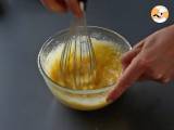 En un bol, mezcla primero los huevos con el azúcar. Luego, añade la maicena y bate bien hasta obtener una mezcla homogénea.