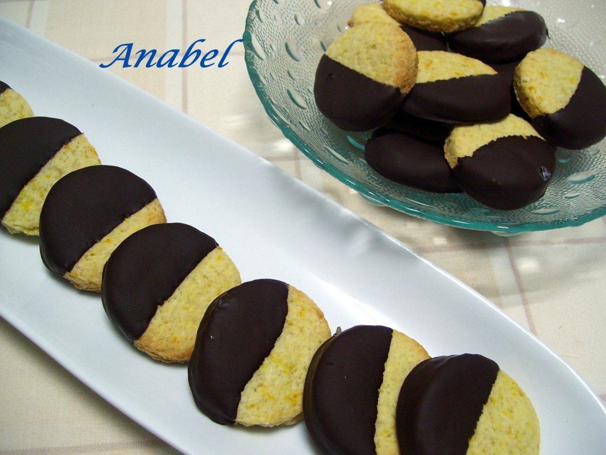Galletas a la naranja con chocolate PostreFácil35 min1048 Kcal Enviar esta receta a un amigo Imprimir esta página Preguntar al autor Publicar la foto de esta receta Ingredientes 2 Ingredientes para 20-22 galletas: 150 gr de harina 60 gr de mantequilla 50 gr de almendras molida 1 cucharada de ralladura de naranja 50 gr de azúcar 2 cucharadas de zumo de naranja 1 yema de huevo sal 100 gr de chocolate fondant Costo estimado: 2.84Euros€ (1.42€/porción)
