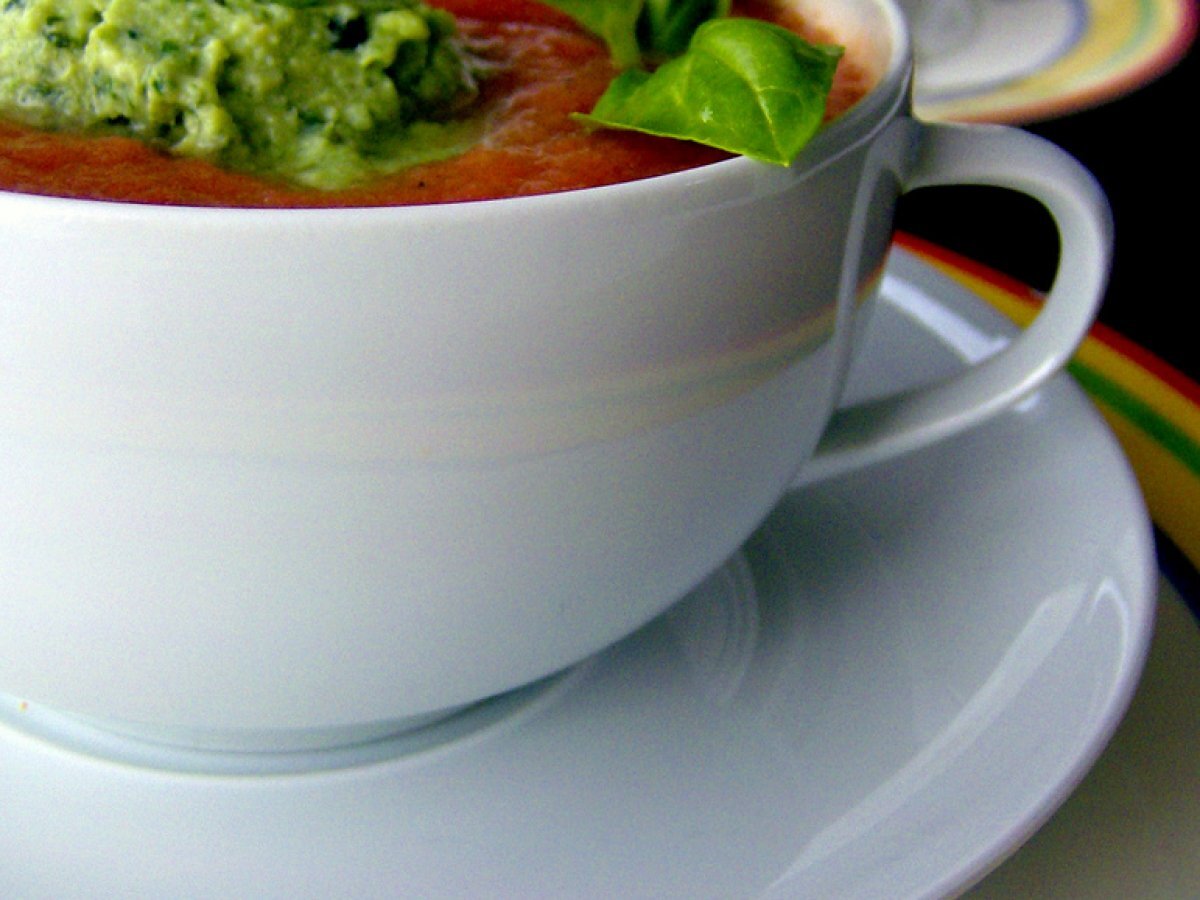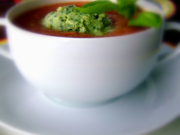 Gazpacho de tomates con helado de albahaca AnteriorSiguiente PostreFácil20 min38 Kcal Enviar esta receta a un amigo Imprimir esta página Preguntar al autor Publicar la foto de esta receta Un postre fabulosamente bueno Ingredientes 2 5 tomates grandes 1 diente de ajo 2 dl de jugo de naranjas sin azúcar 1/2 cucharadita de páprika 1 cucharadita de sal pimienta Costo estimado: 1.11Euros€ (0.56€/porción)