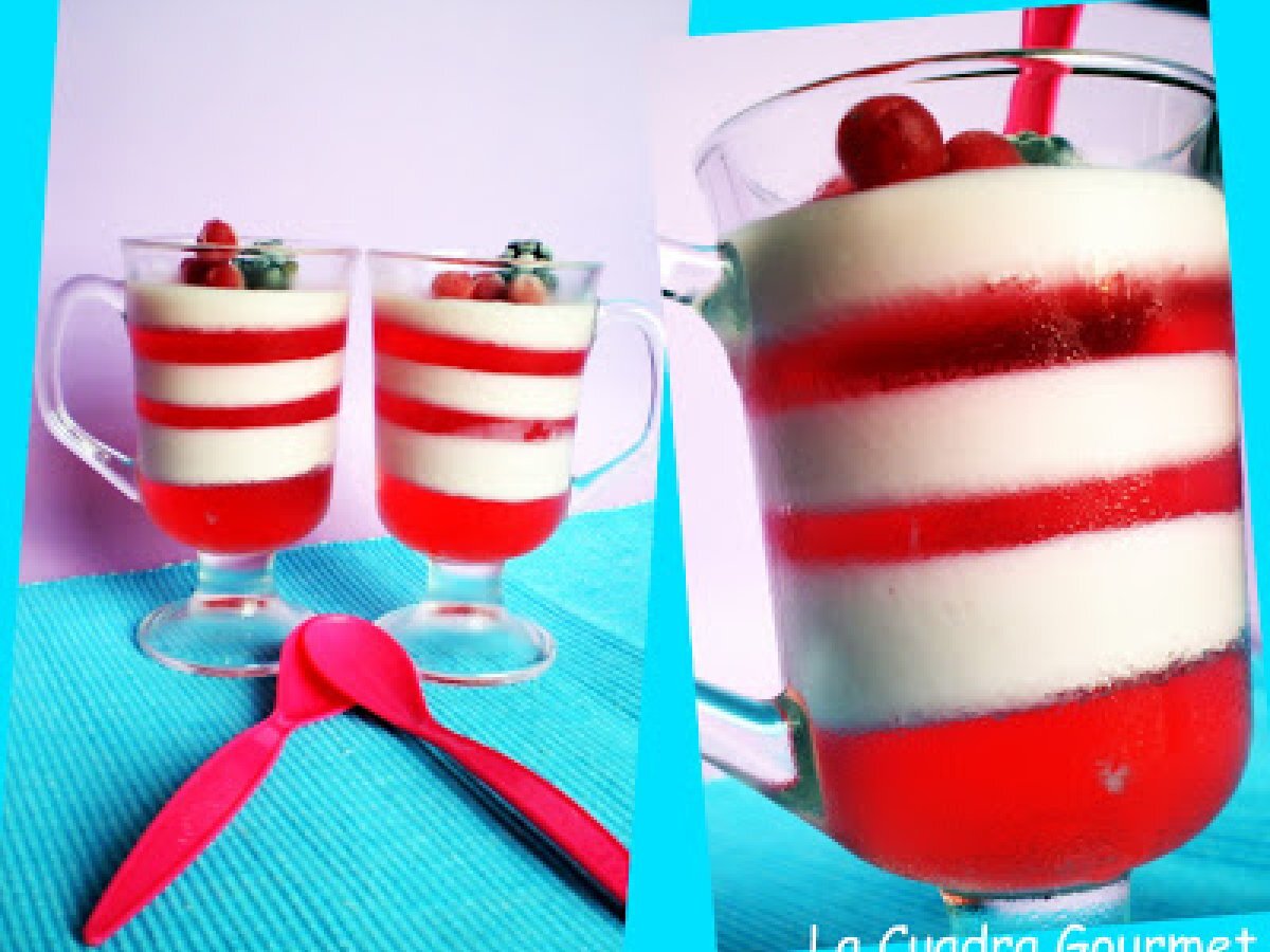 Gelatina bicolor AnteriorSiguiente PostreFácil35 min355 Kcal Enviar esta receta a un amigo Imprimir esta página Preguntar al autor Publicar la foto de esta receta Ingredientes 2 Un sobre de gelatina de fresa Una lata de leche condensada Frutos rojos para decorar Costo estimado: 1.4Euros€ (0.7€/porción)