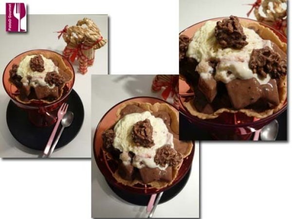 Helado de chocolate, melón con snaxs y vainilla AnteriorSiguiente PostreFácil15 min Enviar esta receta a un amigo Imprimir esta página Preguntar al autor Publicar la foto de esta receta Ingredientes 4 40 grs de crispy snax de Milka 100 grs de melón ?piel de sapo? 2 bolas de helado de chocolate 1 bola de helado de vainilla