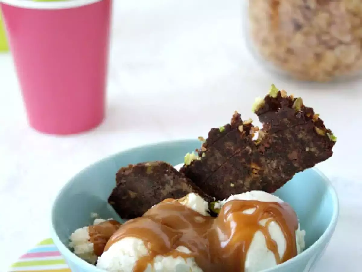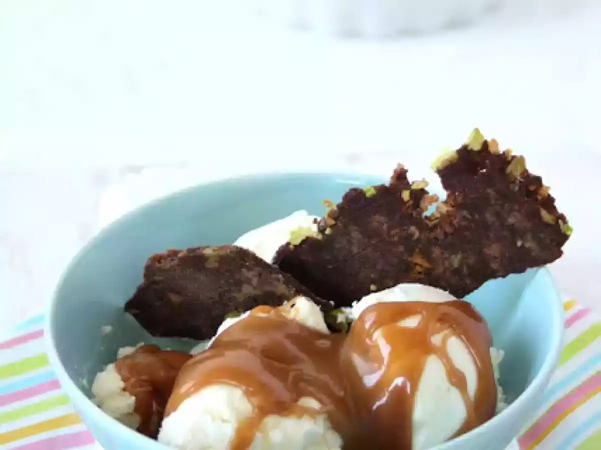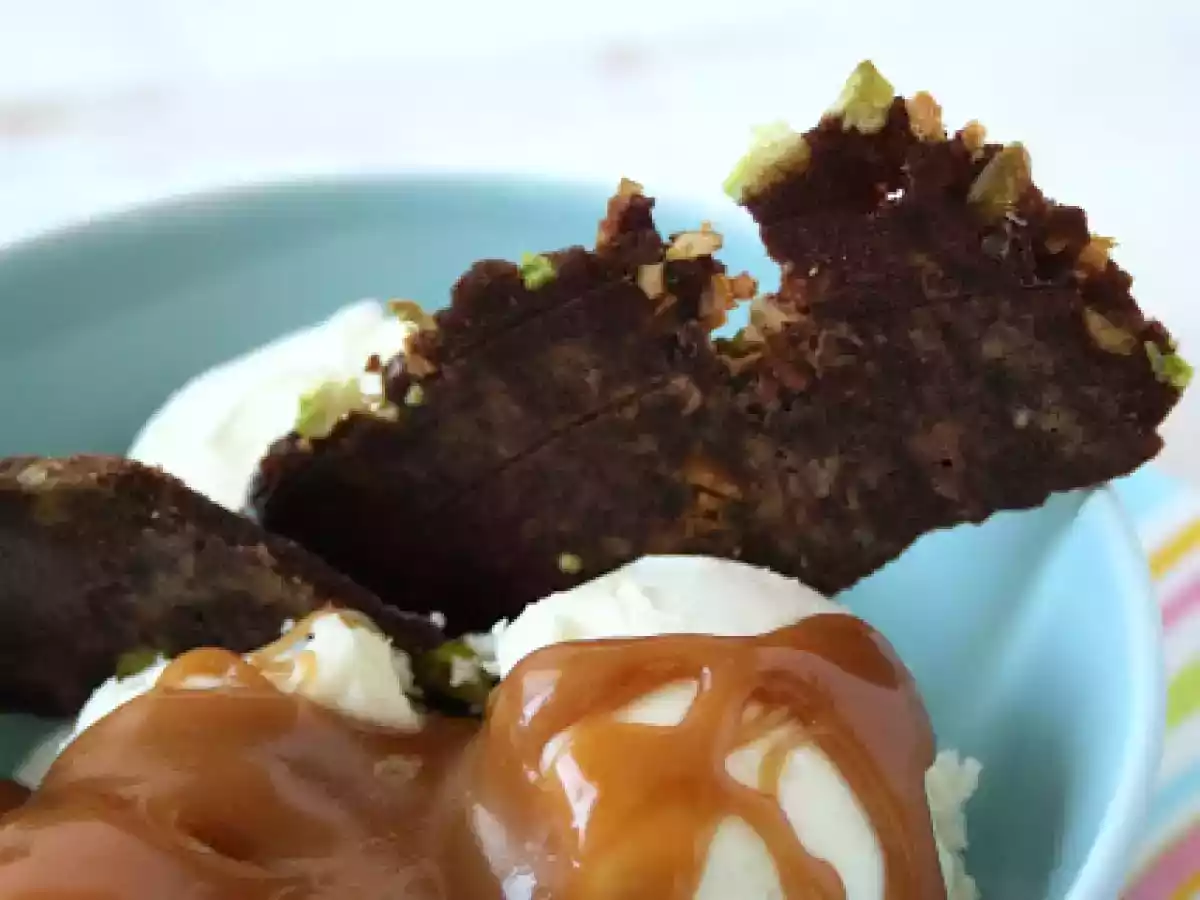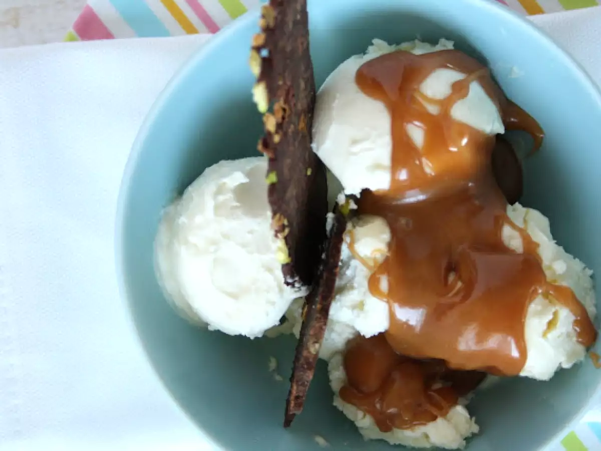Helado de mascarpone con salsa de toffee y praliné de pistachos y cacao AnteriorSiguiente PostreFácil1 hora602 Kcal Enviar esta receta a un amigo Imprimir esta página Preguntar al autor Publicar la foto de esta receta Ingredientes 4 250 g de queso mascarpone 100 g de azúcar 100 ml de nata para montar zumo de 1 limón Sal 125 g de azúcar 40 ml de agua 60 g de mantequilla a temperatura ambiente 75 ml de nata para montar Sal 25 g de pistachos pelados y limpios 50 g de azúcar moreno 15 ml de agua Costo estimado: 3.73Euros€ (0.93€/porción)