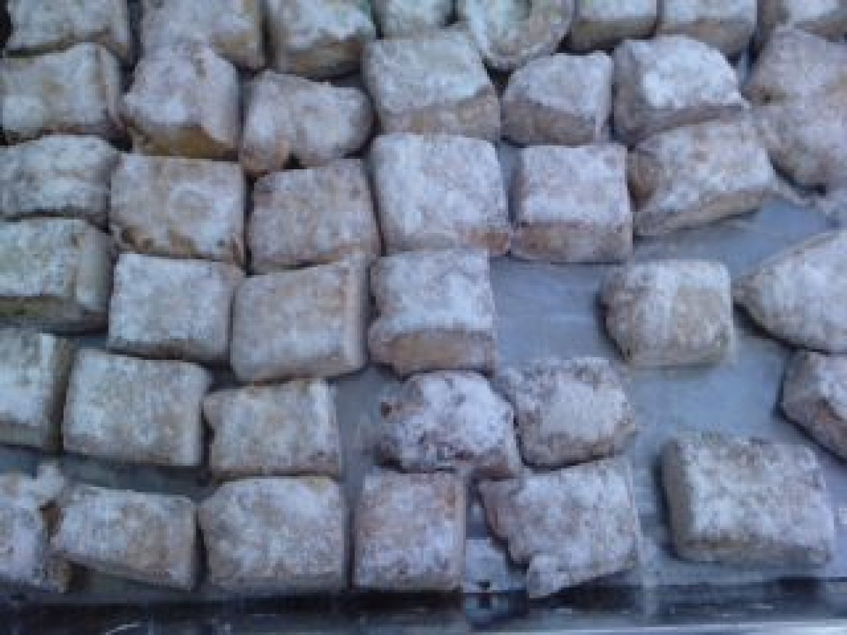 Hacer cuadrados y meter en el horno a 180 ºC, durante unos 20 minutos. Vigilando bien que no se quemen.