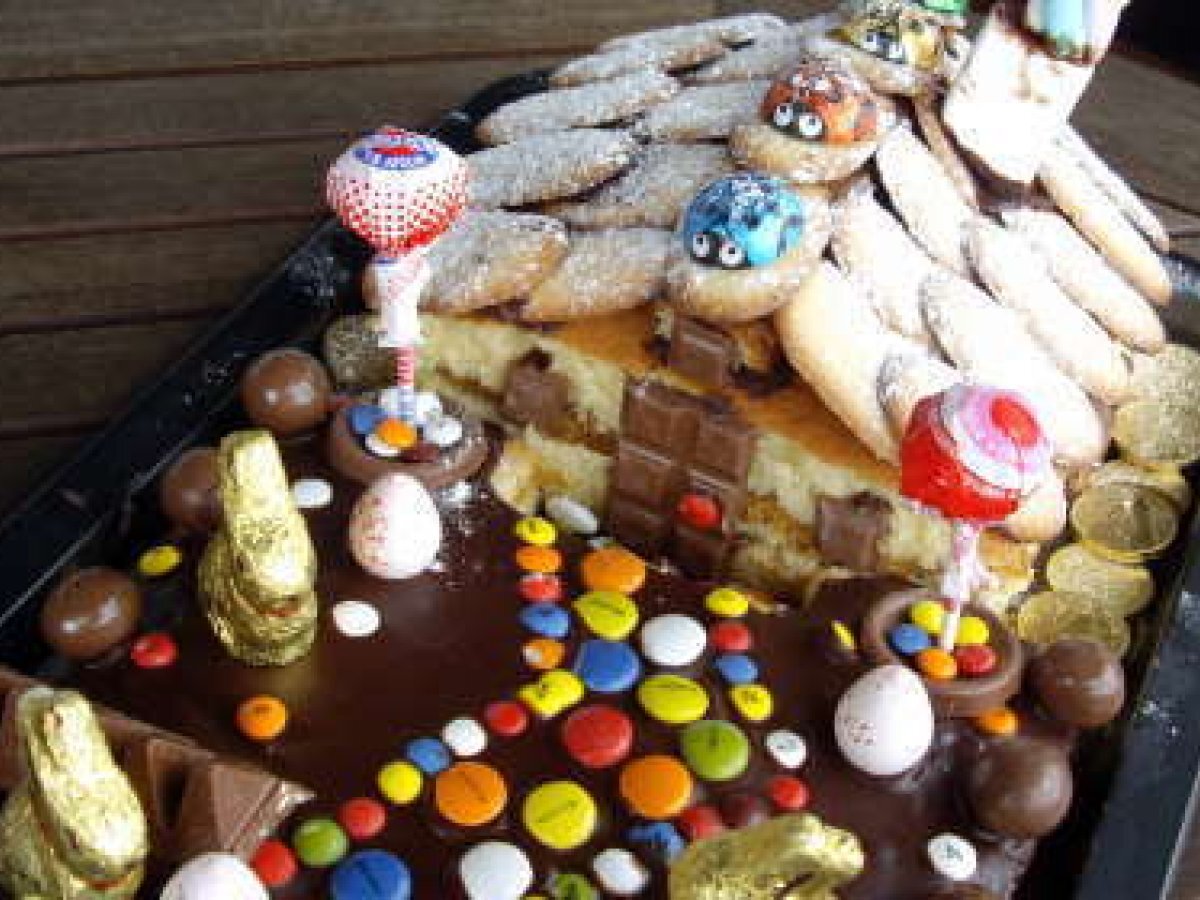 Con otro bizcocho hacer el suelo relleno con dulce de leche y cubierto con el chocolate fundido con la nata.
