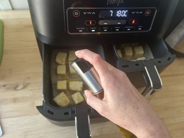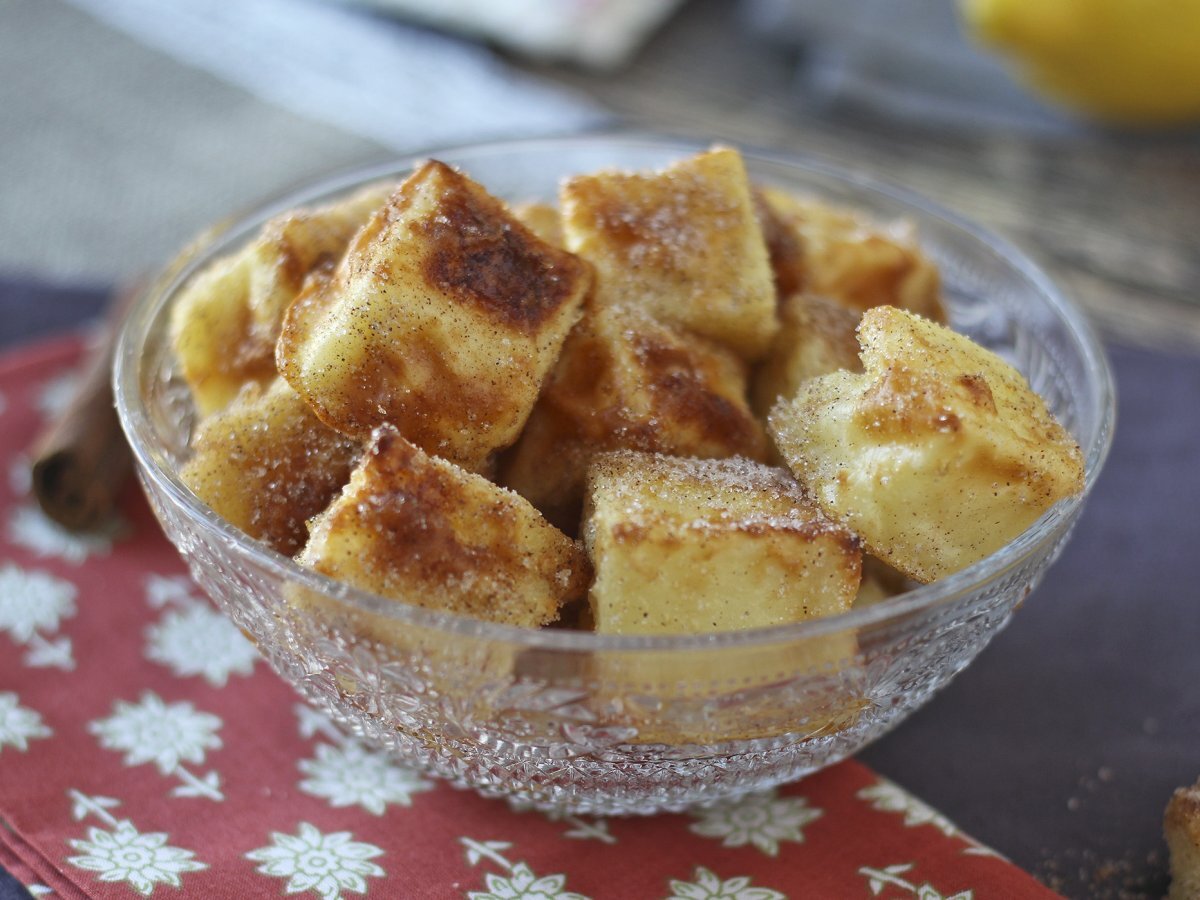 Leche frita en freidora de aire. el postre tradicional con menos aceite y el sabor de siempre