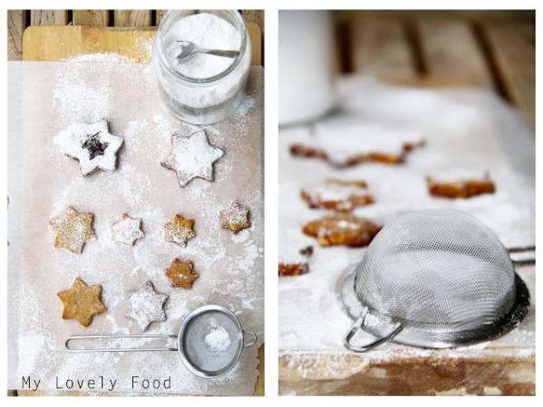 Hoy os dejo otra idea para disfrutar un poquito de la Navidad culinariamente hablando, o una idea para regalar, sin muchas complicaciones. Estas galletas estan tremendas, ya que llevan un toque de canela en la masa y avellanas en trozos, no picadas, por lo que en cada bocado nos los vamos encontrando y que junto con el toque final de la mermelada las hacen realmente buenas.