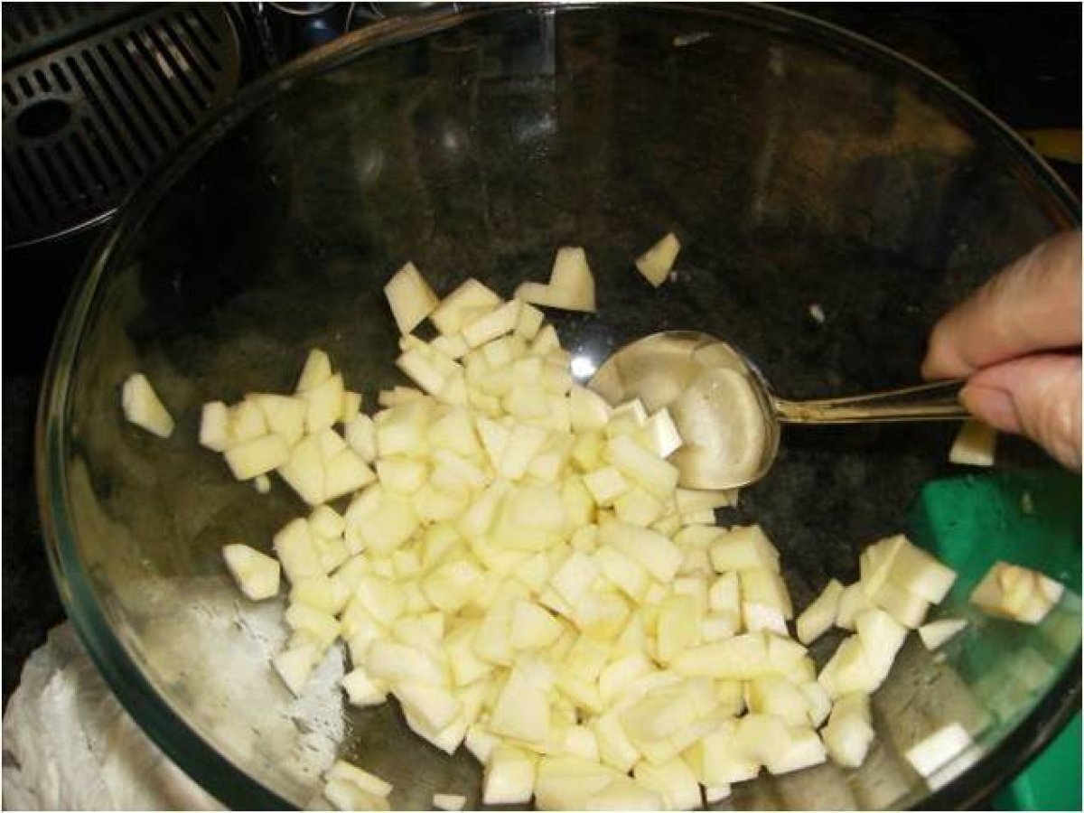 Las frutas las cortamos en cuadrados pequeños,pelamos y cortamos la manzana.