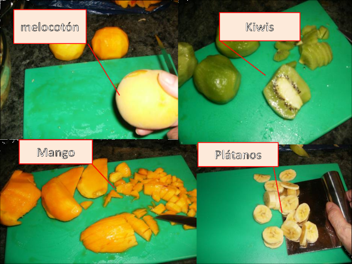 Picamos todas la fruta en trozos pequeños.