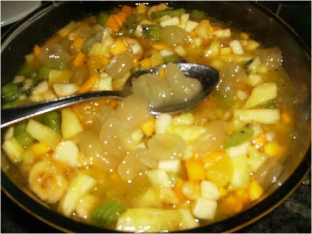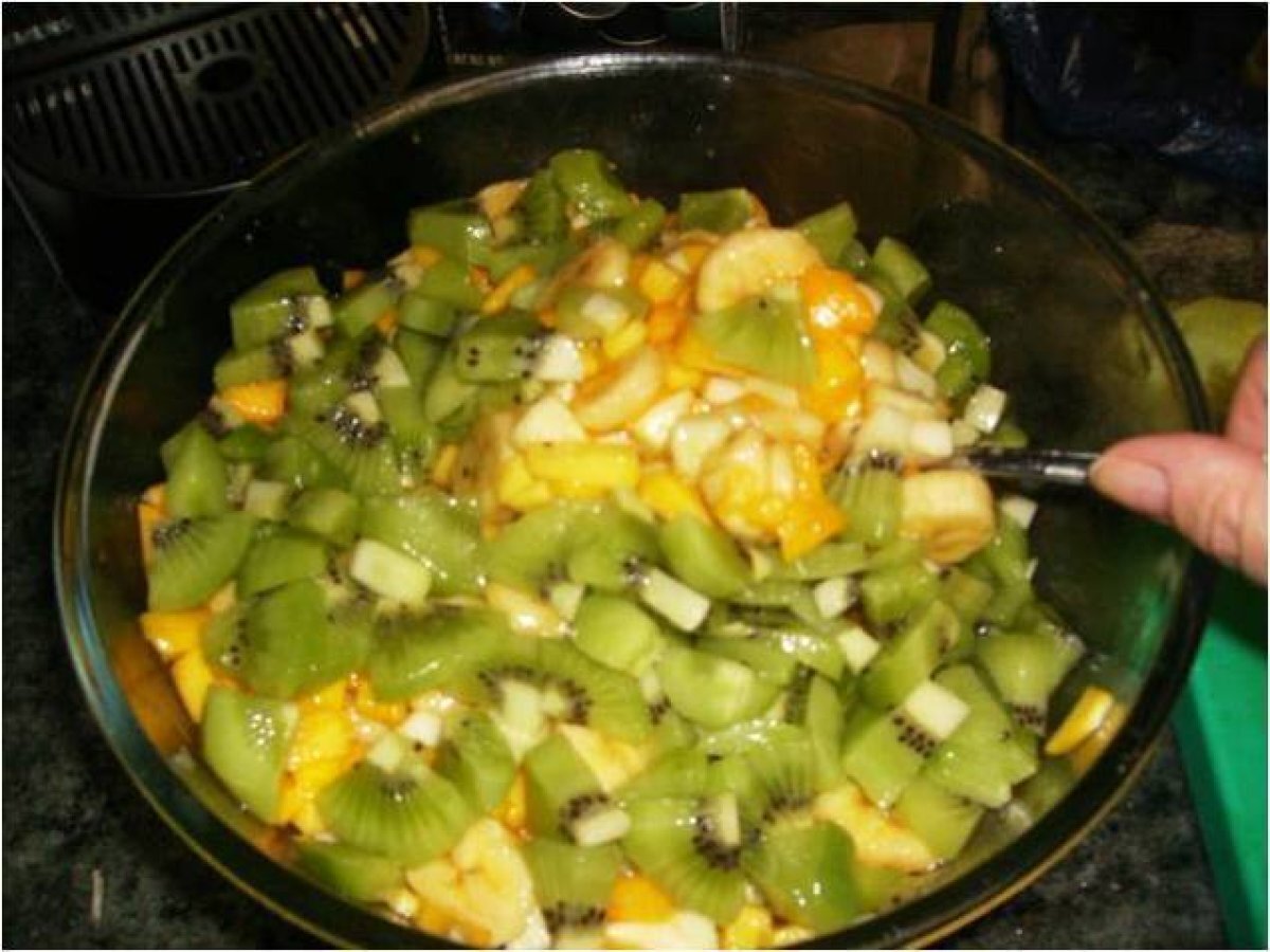 Frutas podéis poner las que mas os gusten, es un postre muy sano y delicioso, y en una comidas de invitados es un éxito asegurado, espero que os guste besos