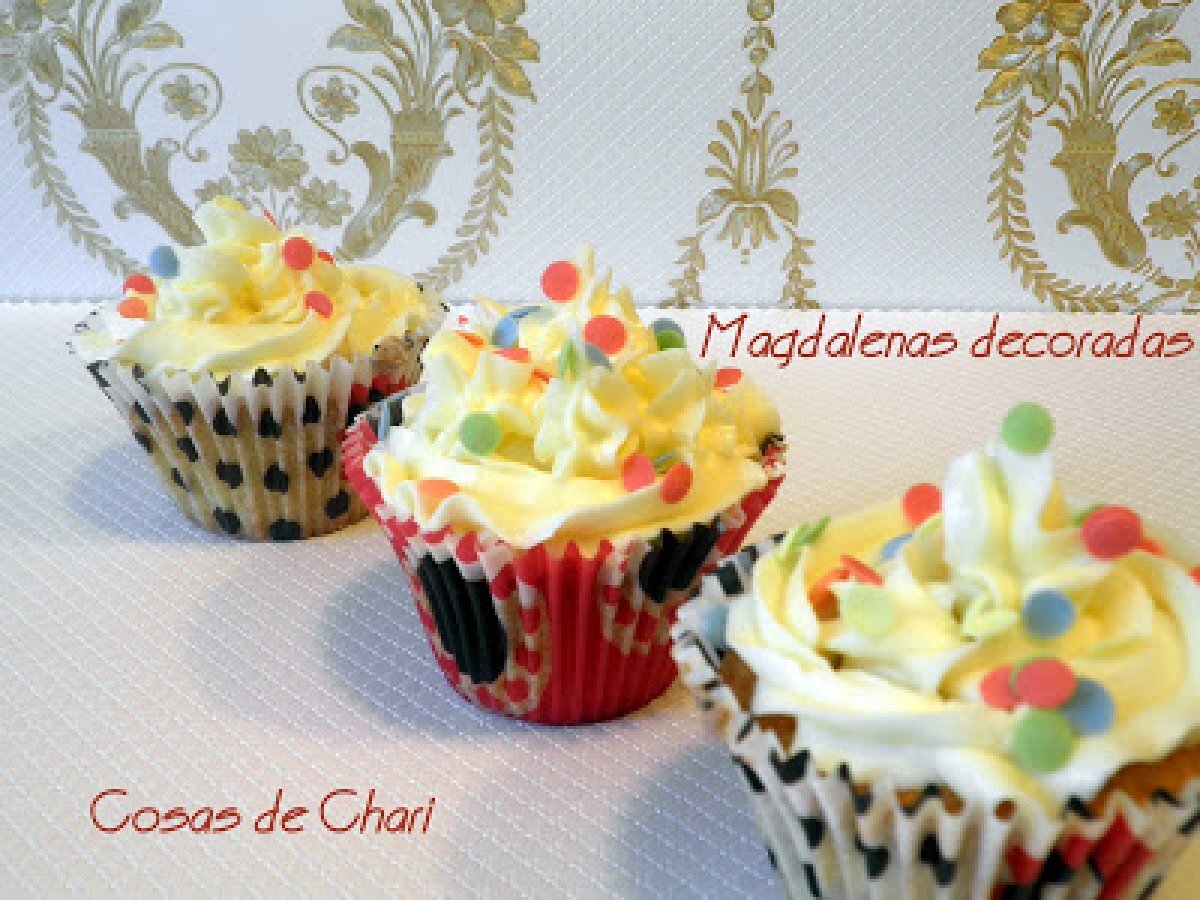 Magdalenas decoradas (cupcakes) AnteriorSiguiente PostreFácil35 min829 Kcal Enviar esta receta a un amigo Imprimir esta página Preguntar al autor Publicar la foto de esta receta Ingredientes 2 100 g harina todo uso 1 cucharadita levadura royal 100 g mantequilla a temperatura ambiente 100 g azúcar 2 huevos grandes ligeramente batidos 1 cucharada leche (opcional) Costo estimado: 1.32Euros€ (0.66€/porción)