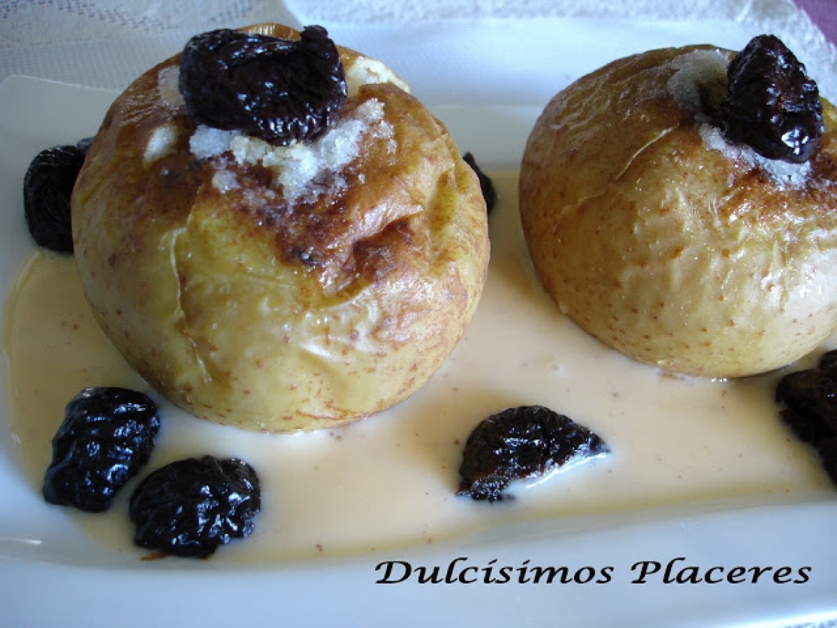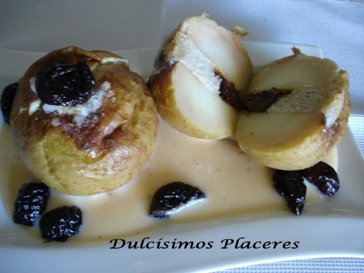 Manzana asada al calvados sobre base de natillas vota ahora AnteriorSiguiente PostreFácil1 h 15 m453 Kcal Enviar esta receta a un amigo Imprimir esta página Preguntar al autor Publicar la foto de esta receta Ingredientes 5 1 manzana reineta por persona Almendras 4 ciruelas pasas sin hueso por manzana Calvados Mantequilla Agua 1 cucharada de azúcar por manzana 1 l de leche a temperatura ambiente 3 yemas de huevo 200 g de azúcar 40 g de maicena 1/2 corteza de limón 1 ramita de canela Canela en polvo Costo estimado: 4.87Euros€ (0.97€/porción)