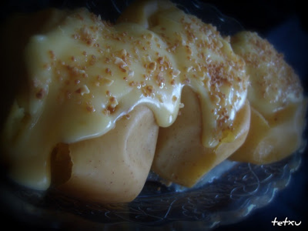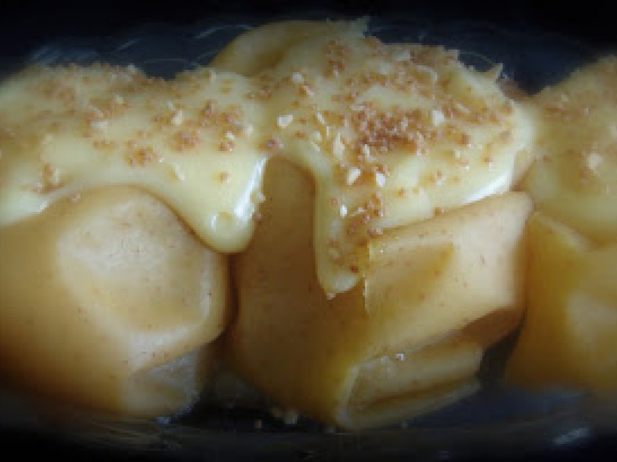 Manzana asada con crema pastelera y crocanti AnteriorSiguiente PostreFácil50 min2109 Kcal Enviar esta receta a un amigo Imprimir esta página Preguntar al autor Publicar la foto de esta receta Ingredientes 2 3 manzanas golden 1 palo de canela 6 cucharadas de azucar 6 cucharadas de agua un poquito de mantequilla para la crema: 3 yemas 100 g de azúcar 25 g de maizena 280 de leche 25 g de mantequilla Costo estimado: 7.13Euros€ (3.56€/porción)