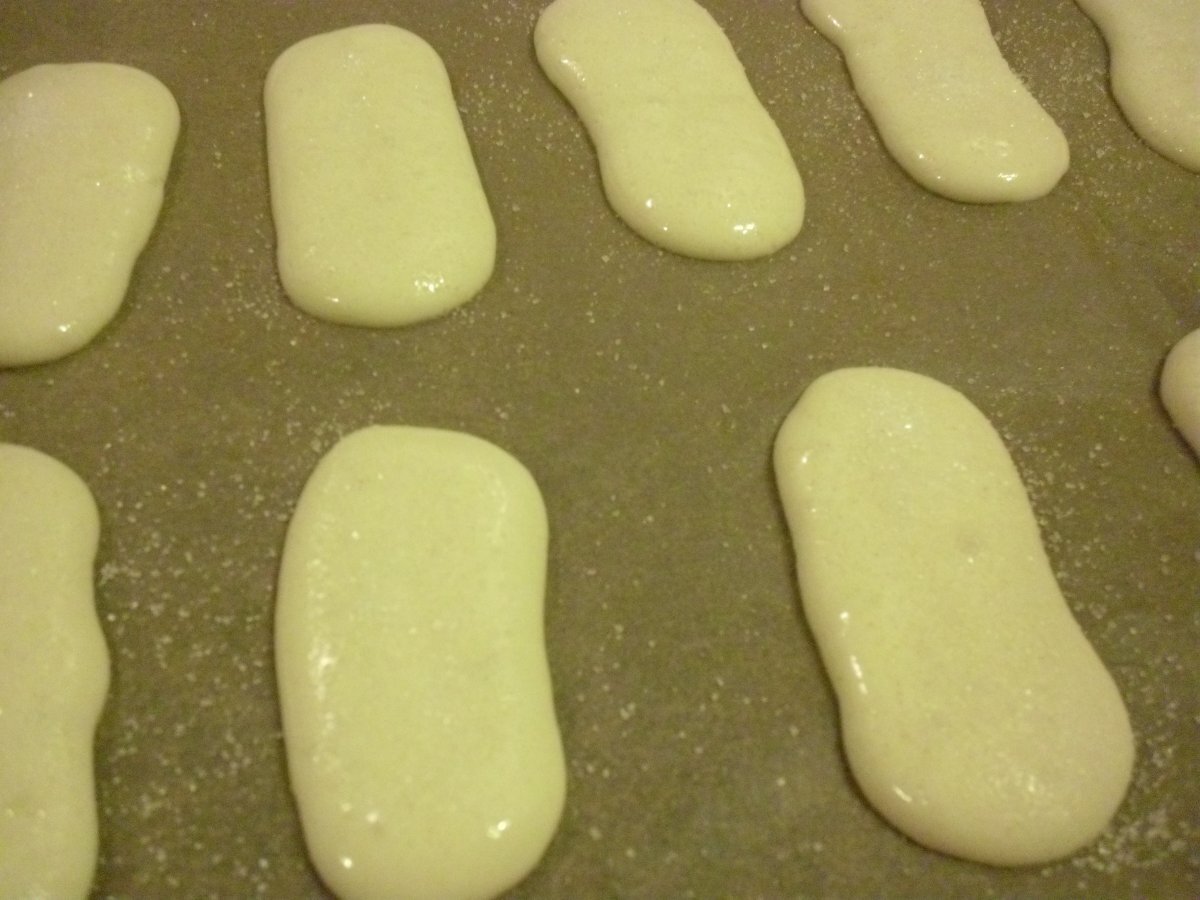 Después poner la mezcla en una manga pastelera, no hace falta boquilla, sólo hacer un agujero en la bolsa e ir poniendo tiras de masa encima de papel encerado, espolvorear azúcar por encima de cada masita, y hornear 10/12 minutos a 180º.