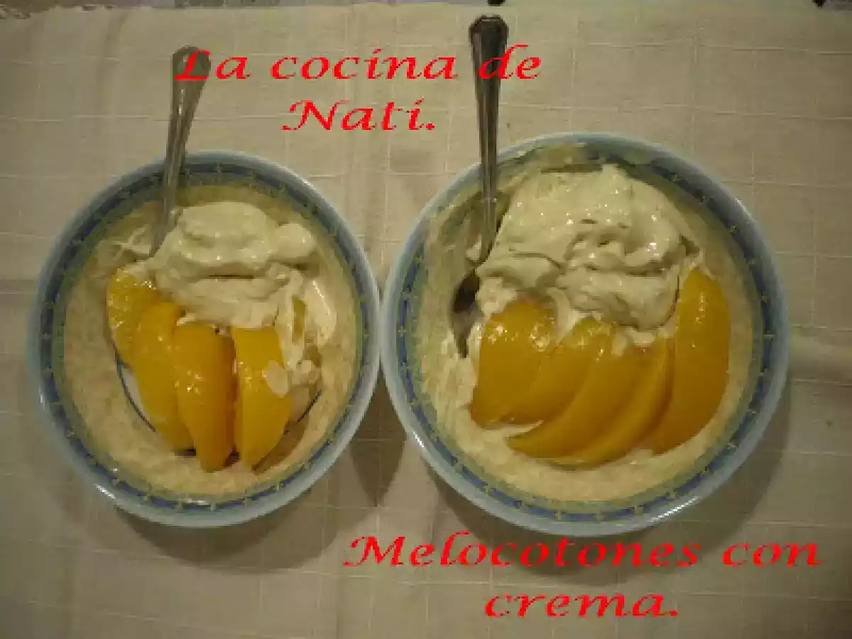 Melocotones con crema PostreFácil25 min537 Kcal Enviar esta receta a un amigo Imprimir esta página Preguntar al autor Publicar la foto de esta receta Ingredientes 2 3 yemas de huevo 50 g de azúcar 100 ml de vino de jerez dulce 4 mitades de melocotón en almíbar 200 ml de nata Costo estimado: 8.24Euros€ (4.12€/porción)