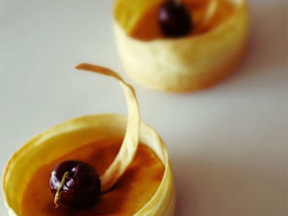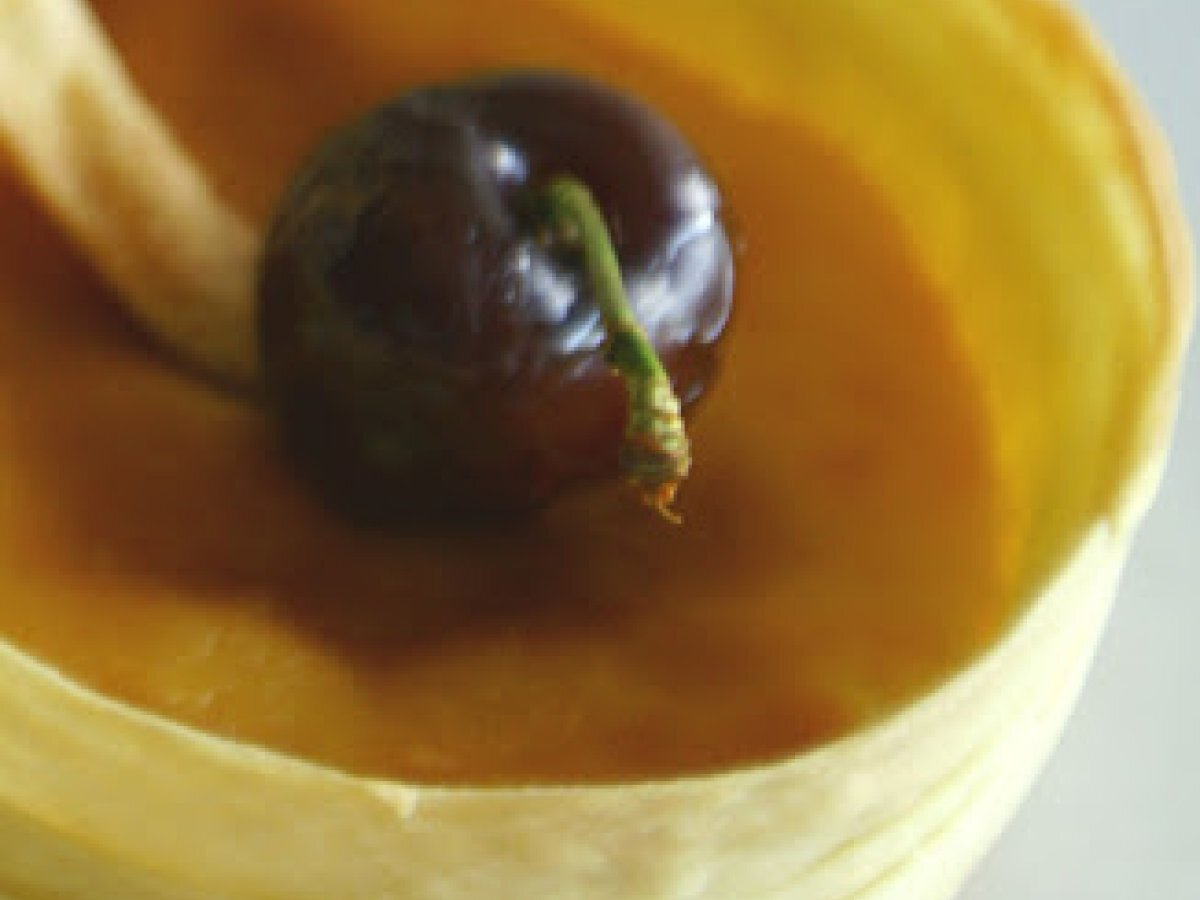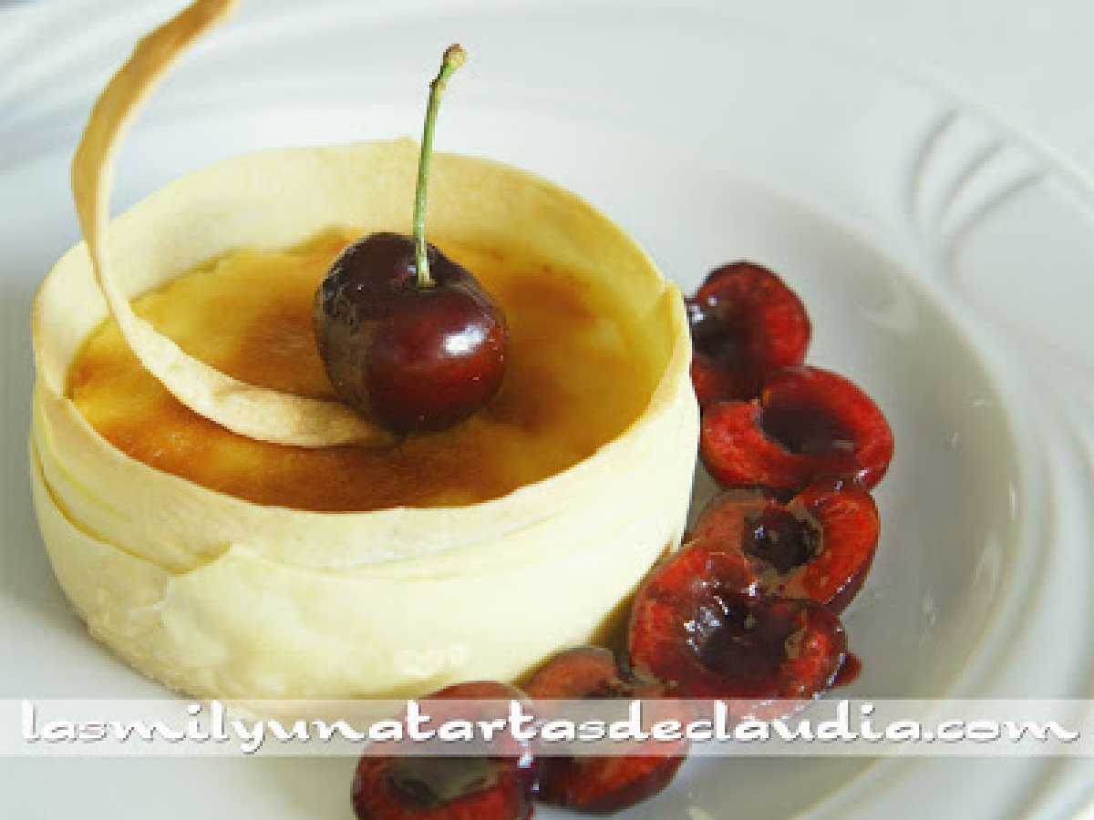 Mini tartas de mascarpone, ricotta y cerezas en anillos de strudel AnteriorSiguiente PostreFácil45 min1132 Kcal Enviar esta receta a un amigo Imprimir esta página Preguntar al autor Publicar la foto de esta receta Ingredientes 2 30 g e mantequilla en pomada 1 pizca de sal 1/2 huevo 150 g de harina de repostería 60 cc de agua tibia Mantequilla derretida 250 g de queso mascarpone 140 g de ricotta 90 g de nata 2 huevos 70 g de azúcar Una vaina de vainilla 300 g de cerezas deshuesadas y cortadas por la mitad 125 cc de agua Unas gotas de limón 100 g de azúcar Costo estimado: 8.23Euros€ (4.11€/porción)
