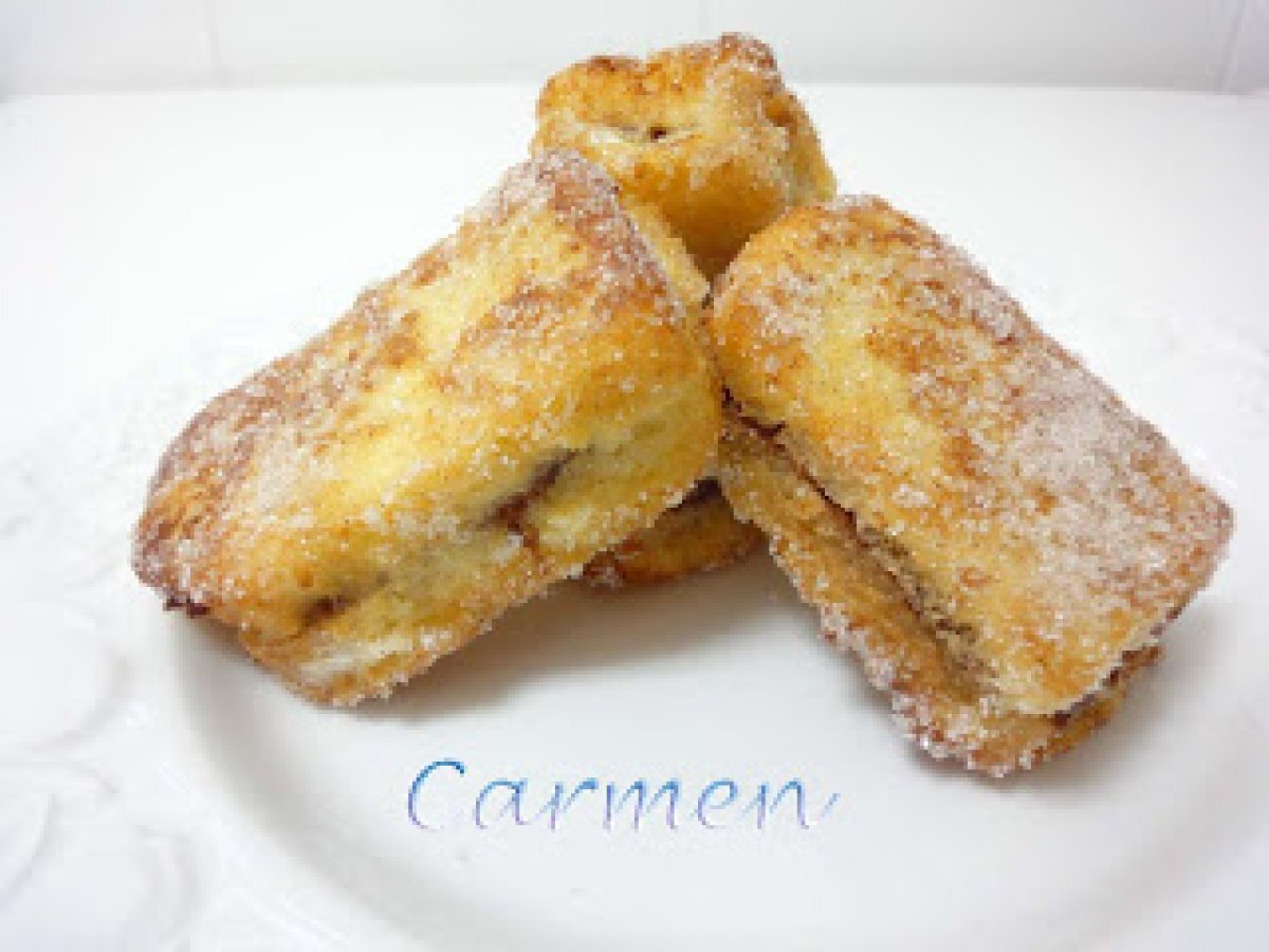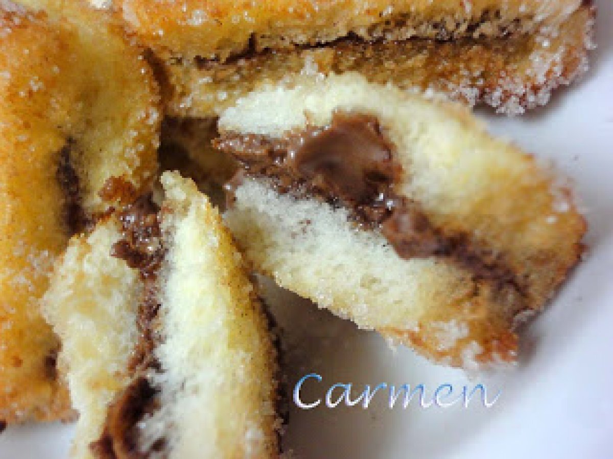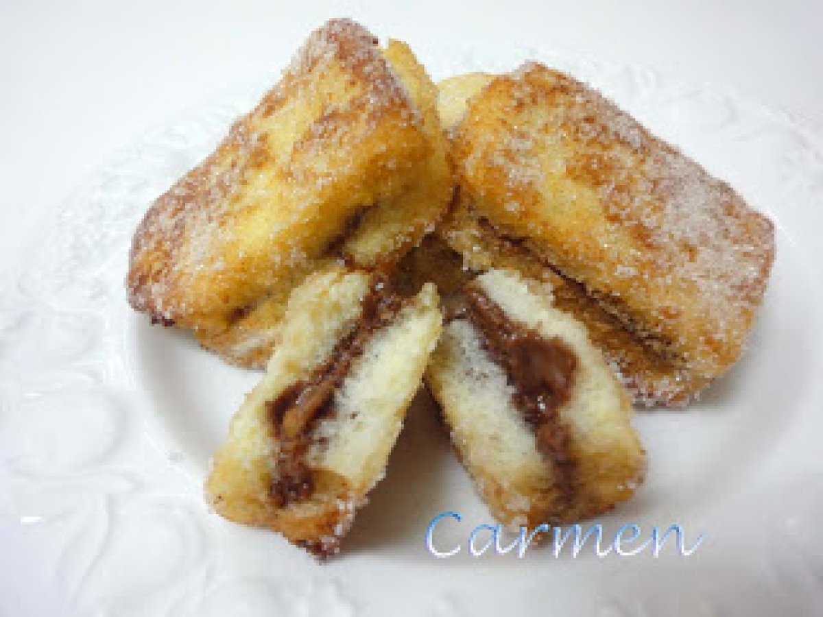 Montaditos de chocolate AnteriorSiguiente PostreFácil1 h 5 m378 Kcal Enviar esta receta a un amigo Imprimir esta página Preguntar al autor Publicar la foto de esta receta Ingredientes 2 6 rebanadas de pan de molde Crema de cacao Leche 2 huevos Azúcar Canela Costo estimado: 0.82Euros€ (0.41€/porción)