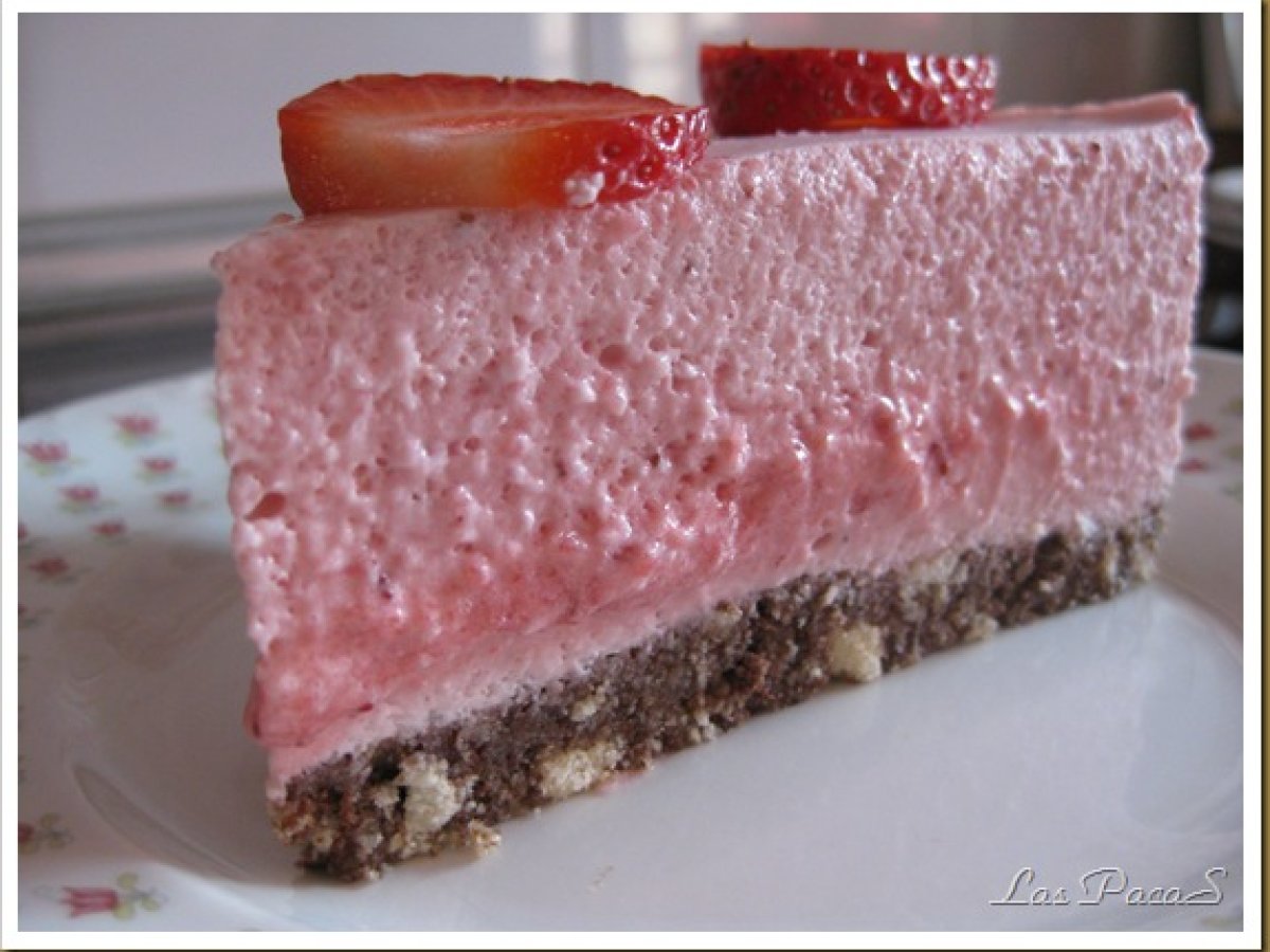 Mousse de fresa y merengue suizo AnteriorSiguiente PostreMedio1 h 25 m320 Kcal Enviar esta receta a un amigo Imprimir esta página Preguntar al autor Publicar la foto de esta receta Ingredientes 8 600 g de fresas 200 g de merengue suizo 6 hojas de gelatina 500 g de nata semimontada 1 base de bizcocho genoves ó galletas con mantequilla Costo estimado: 10.19Euros€ (1.27€/porción)